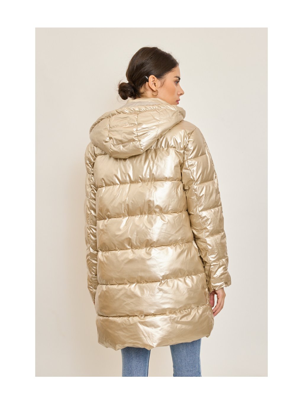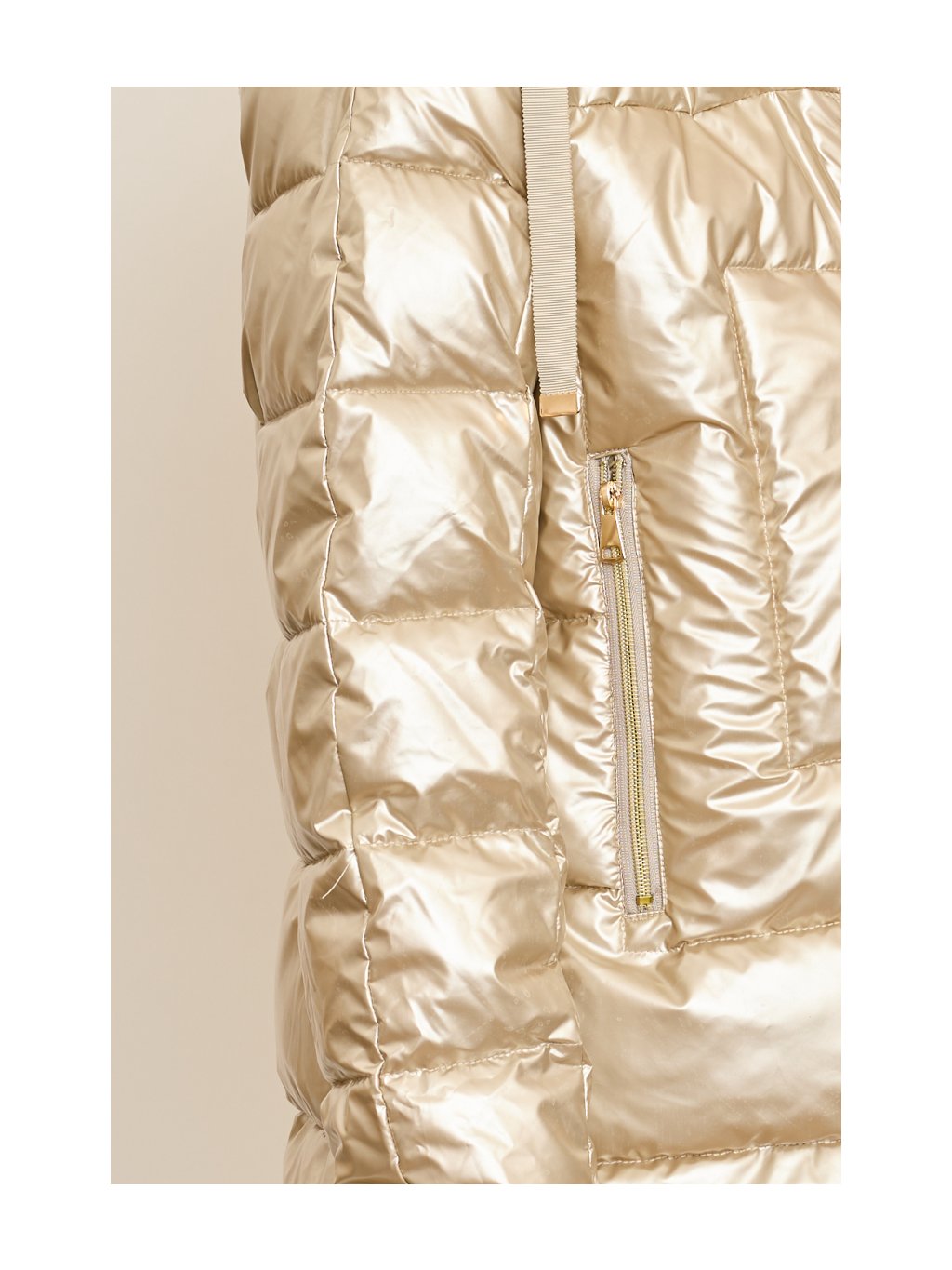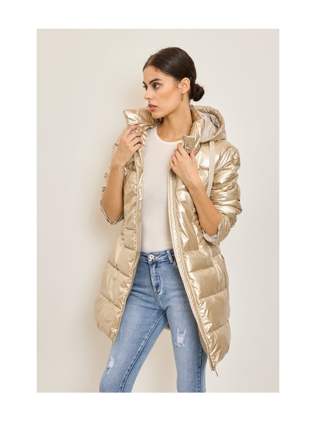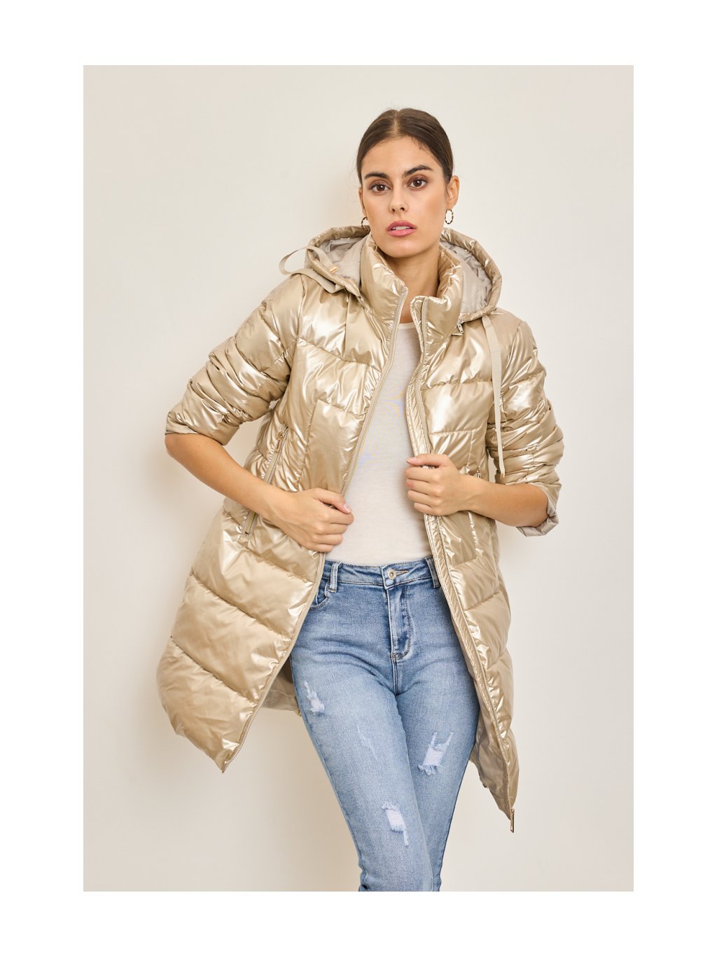 Dámska dlhá zlatá zimná bunda s kapucňou
