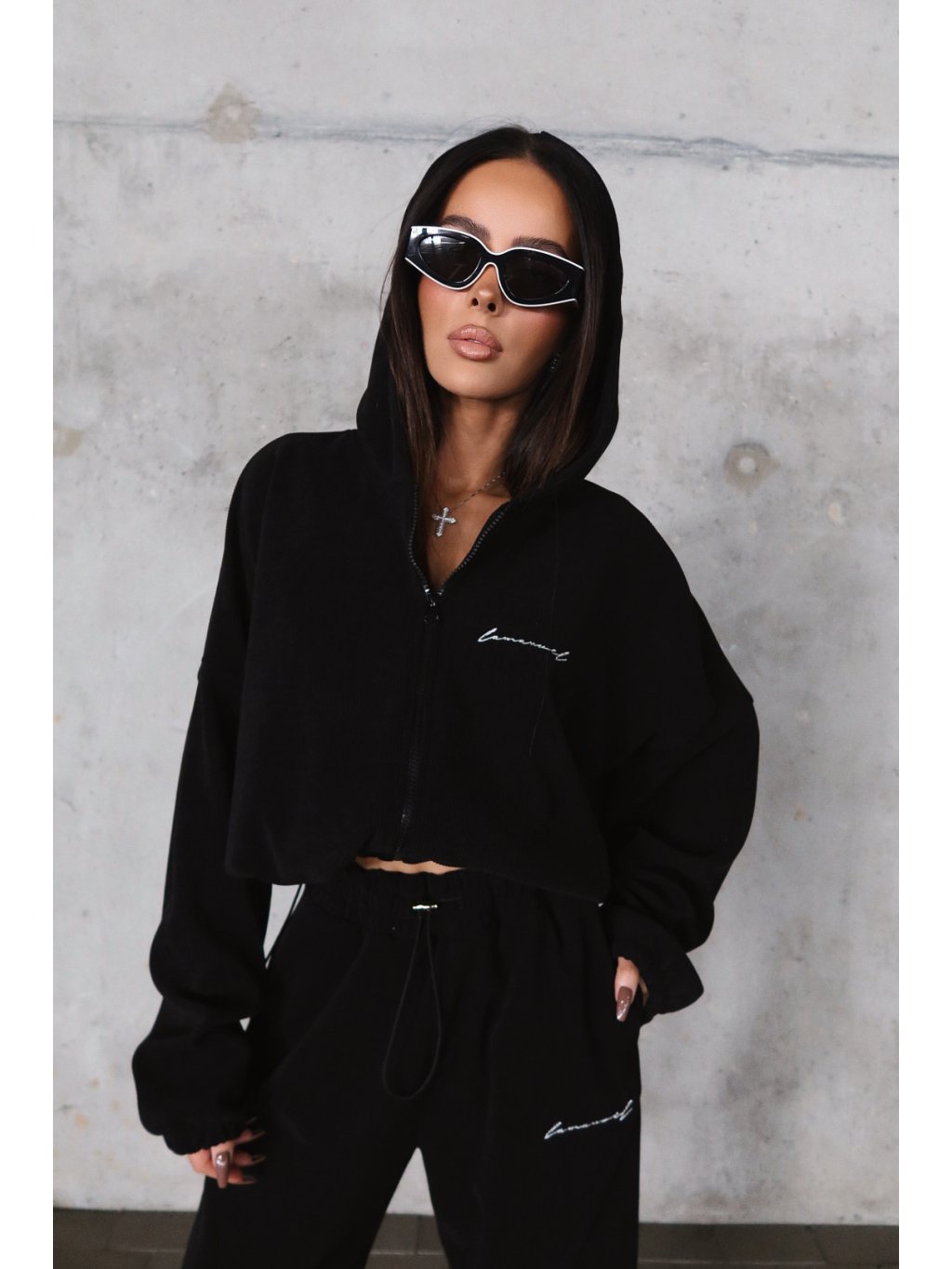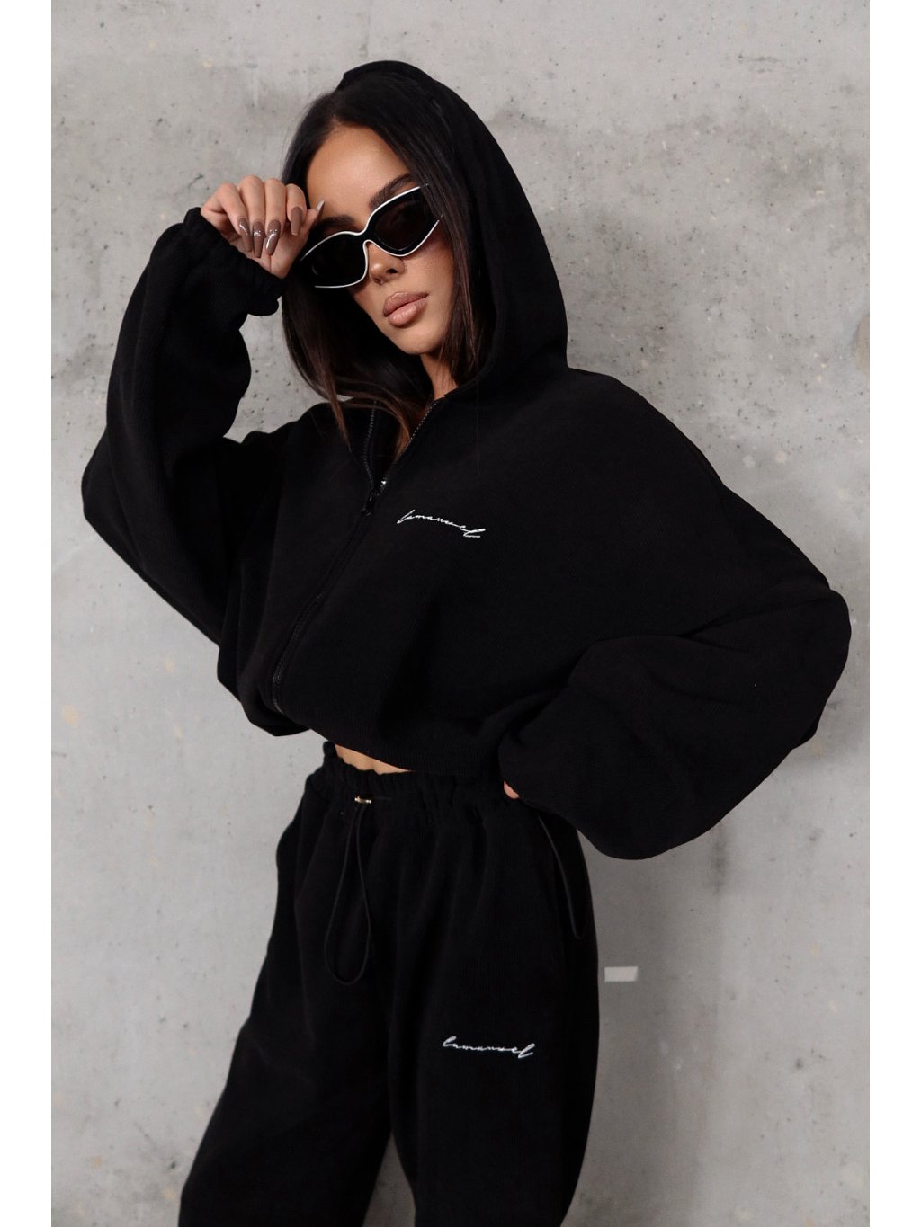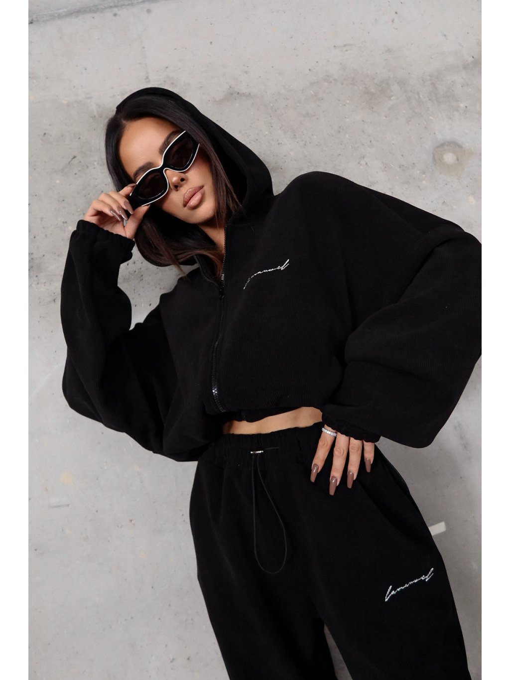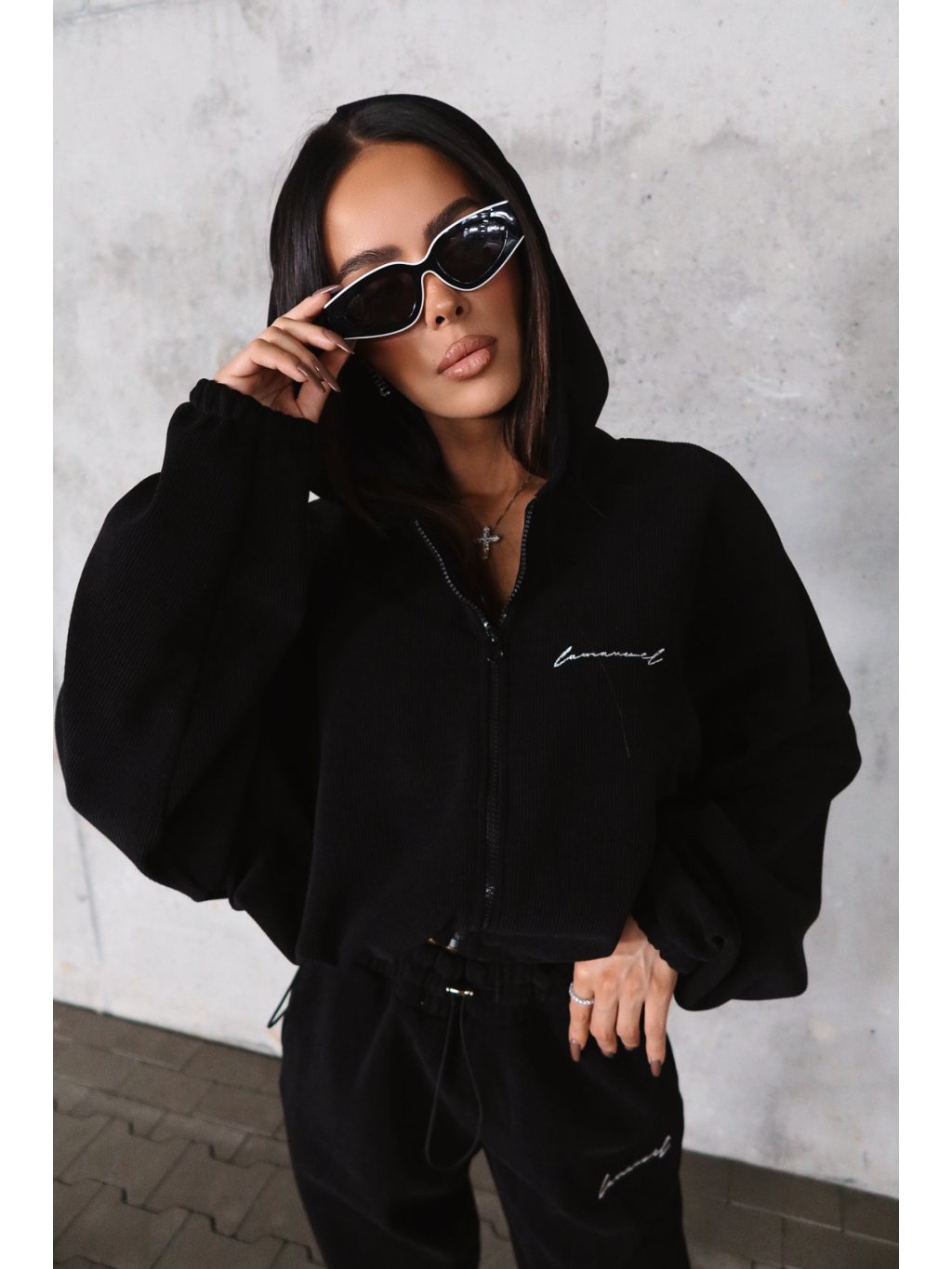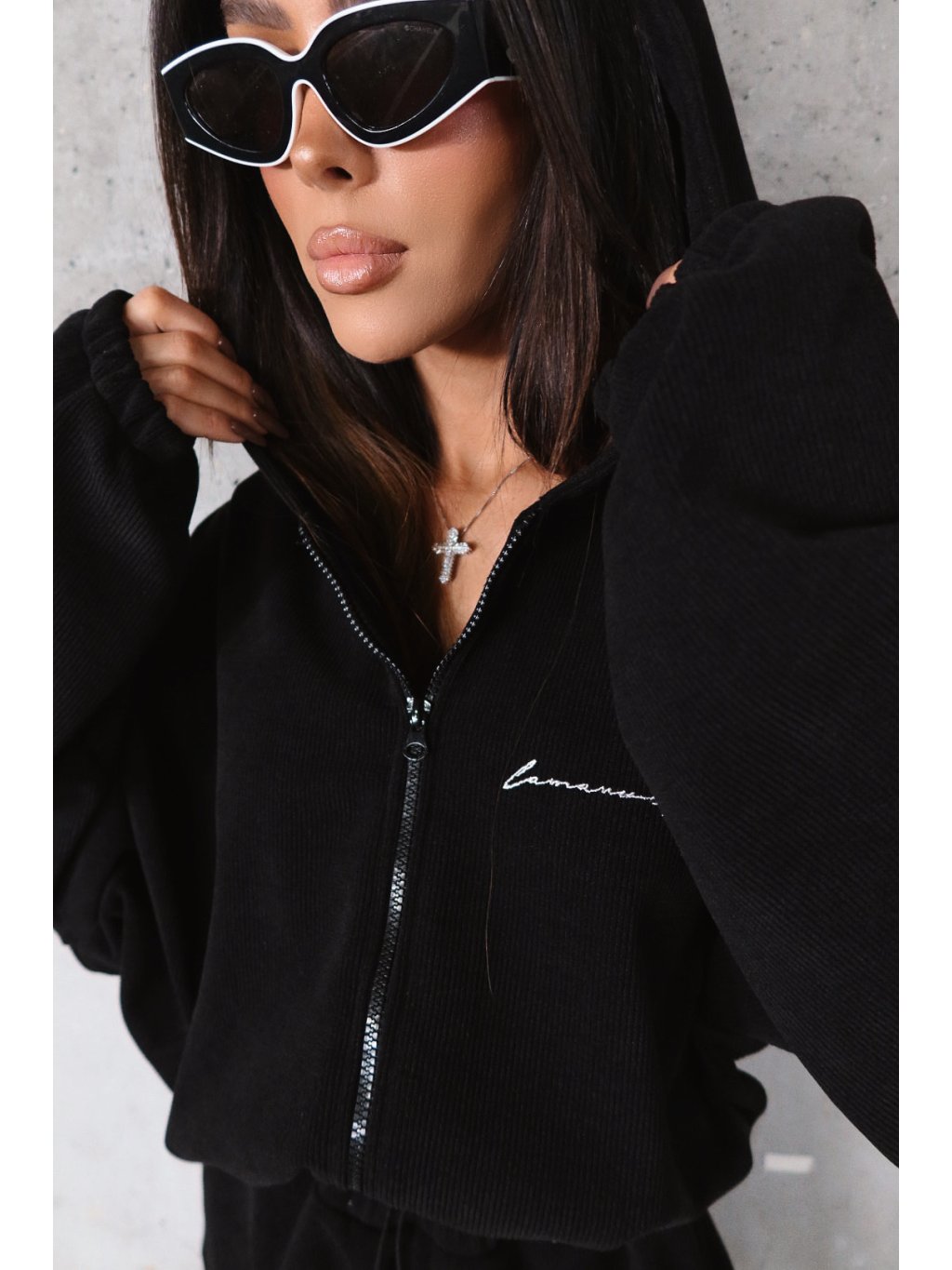 Mäkká, rebrovaná mikina s kapucňou a zipsom po celej dĺžke je kombináciou pohodlia a štýlu. Oversized strih s mierne zníženou líniou ramien jej dodáva mestskú ležérnosť a vyšívané logo jemne zdôrazňuje štýl značky. Funguje skvele sólo alebo ako súprava.