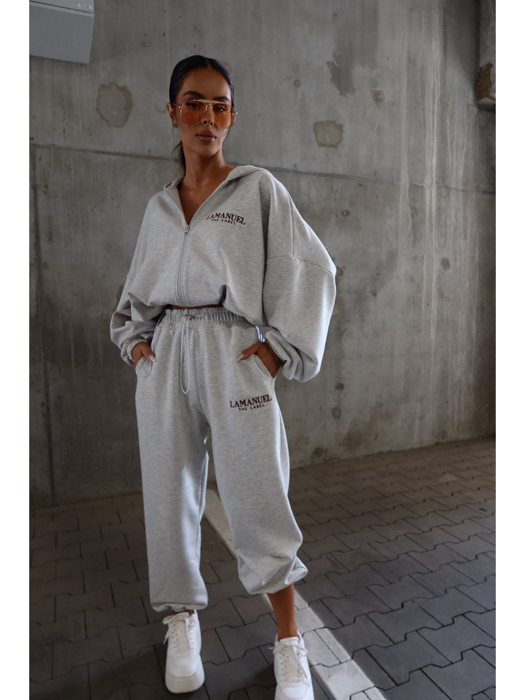 Mikina voľného strihu so zipsom a s kapucňou a všitou šnúrkou v spodnej časti, ktorá umožňuje nastaviť šírku a zdôrazniť pás. Široké rukávy, zakončené jemnou gumičkou. Na hrudi a na chrbte je výrazné logo LAMANUEL, ktoré dodáva celku charakter. Model je vyrobený z mäkkého, na dotyk príjemného úpletu, ideálneho na každodenné nosenie a cestovanie. Skombinujte ju s nohavicami BASIC pre úplné doplnenie outfitu. Mikina sedí od veľkosti XS po XL.