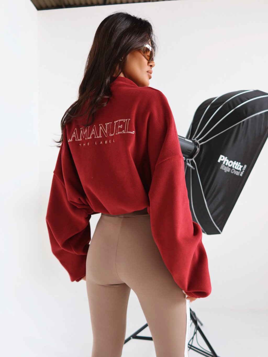 Oversize mikina z hrubšieho, hrejivého fleecu, ktorá je ideálna na chladnejšie dni. Materiál je mäkký, príjemný na dotyk a dobre udržuje teplo. Model s krátkym zipsom a vysokým golierom, ktorý si môžete postaviť alebo rozopnúť pre ležérnejší vzhľad. Výšivka s logom LAMANUEL na prednej a zadnej strane. Spodná časť mikiny je nastaviteľná – dá sa nosiť voľne alebo sa uťahuje pomocou šnúrky. Vďaka svojmu univerzálnemu, voľnému strihu sa hodí aj k siluetám až do XL.