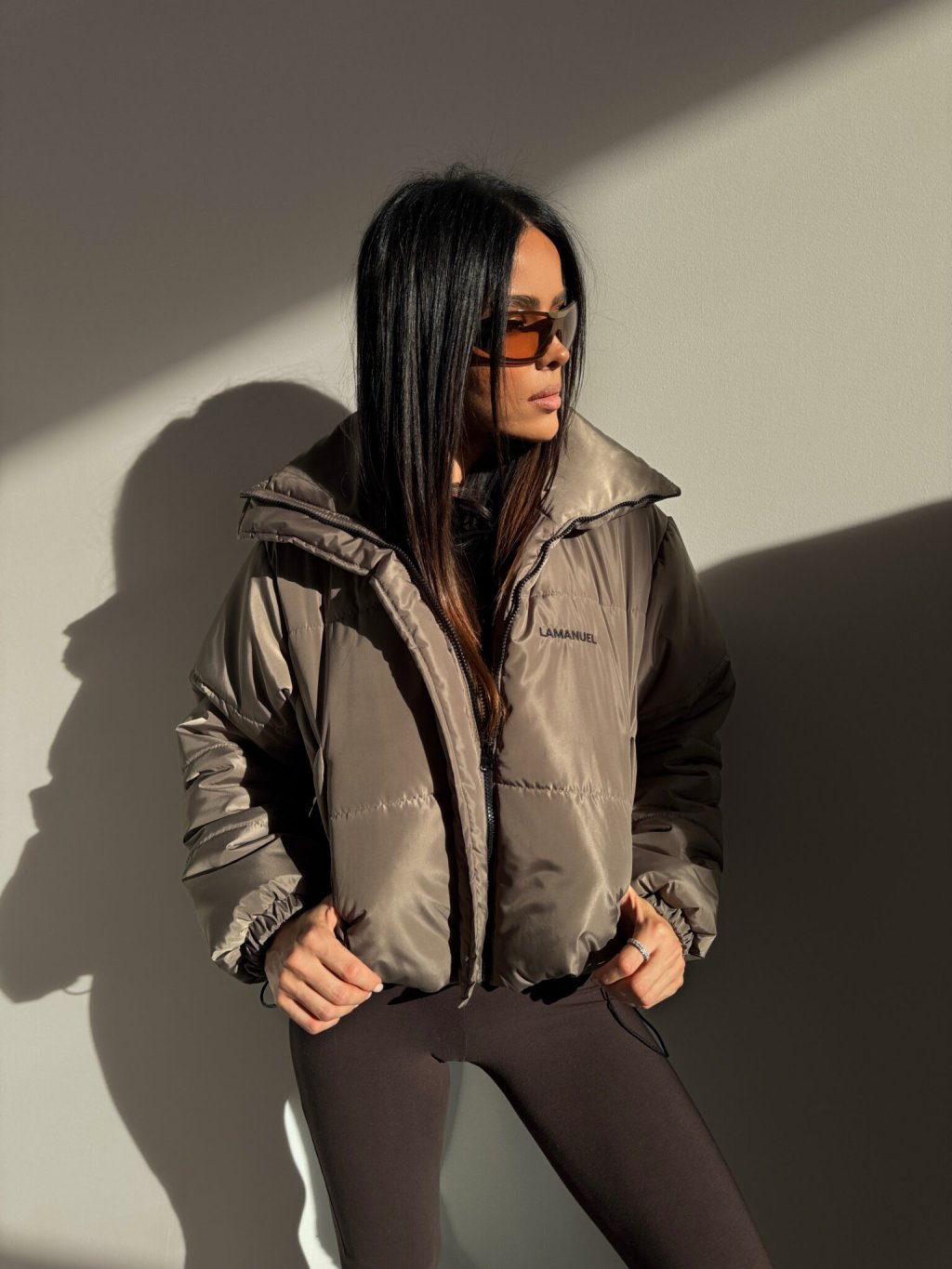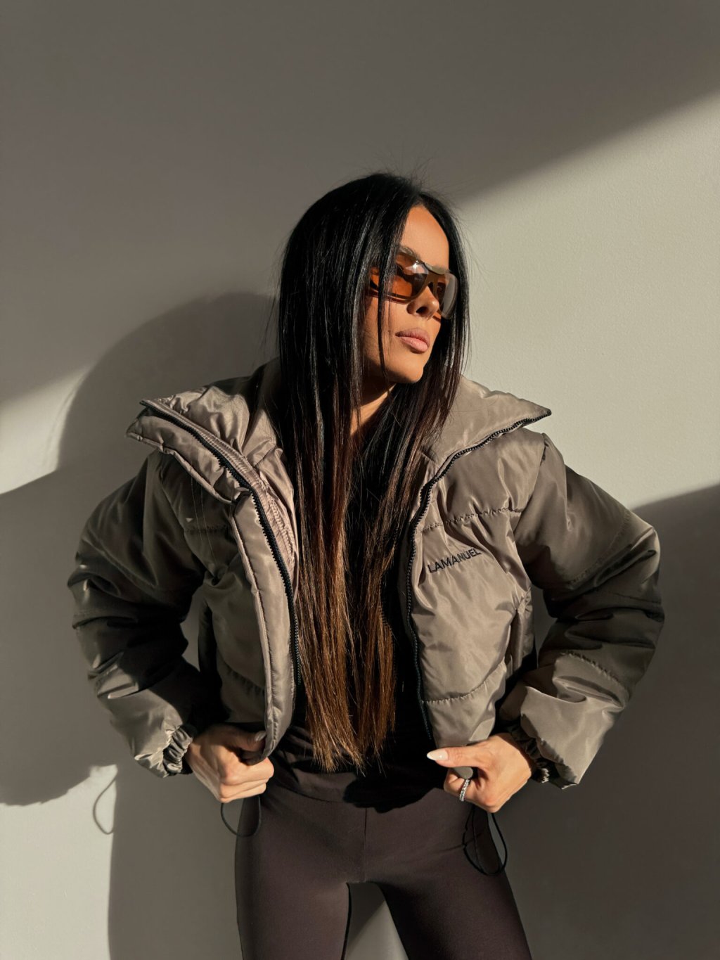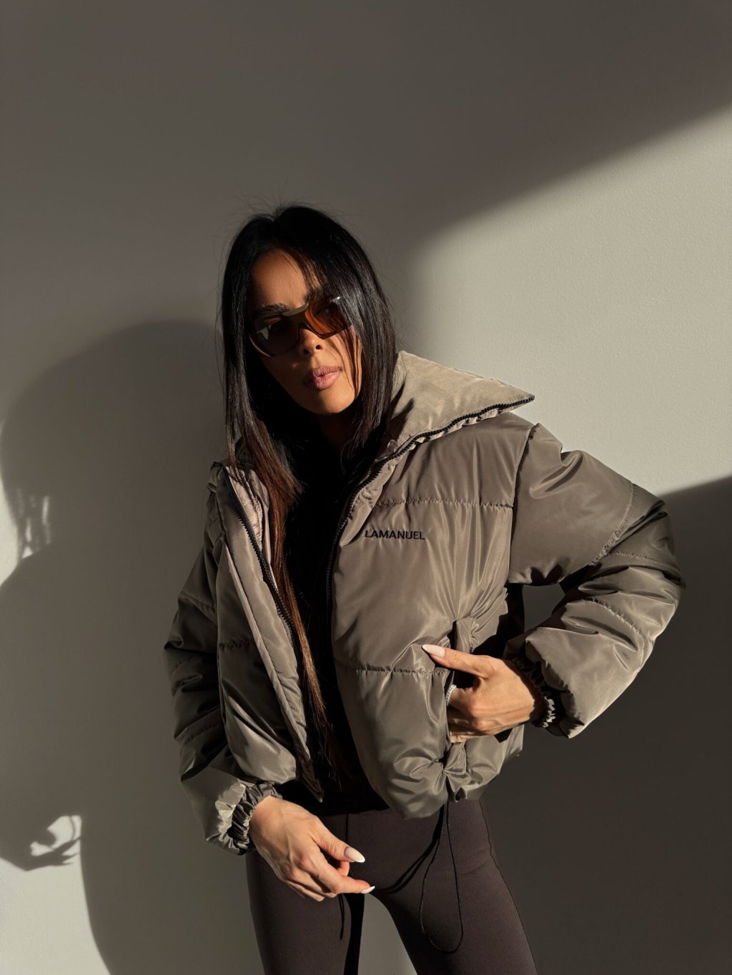 Zimná bunda so silne vyplneným tvarom a vysokým golierom dodáva oversized efekt. Je ľahká, ale špecifická, s úpravou v spodnej časti a logom vpredu a vzadu, čo je klasika v štýle LAMANUEL – vyzerá dobre s legínami, teplákmi, ale aj robustnými topánkami, ležérne, ale celistvo.
