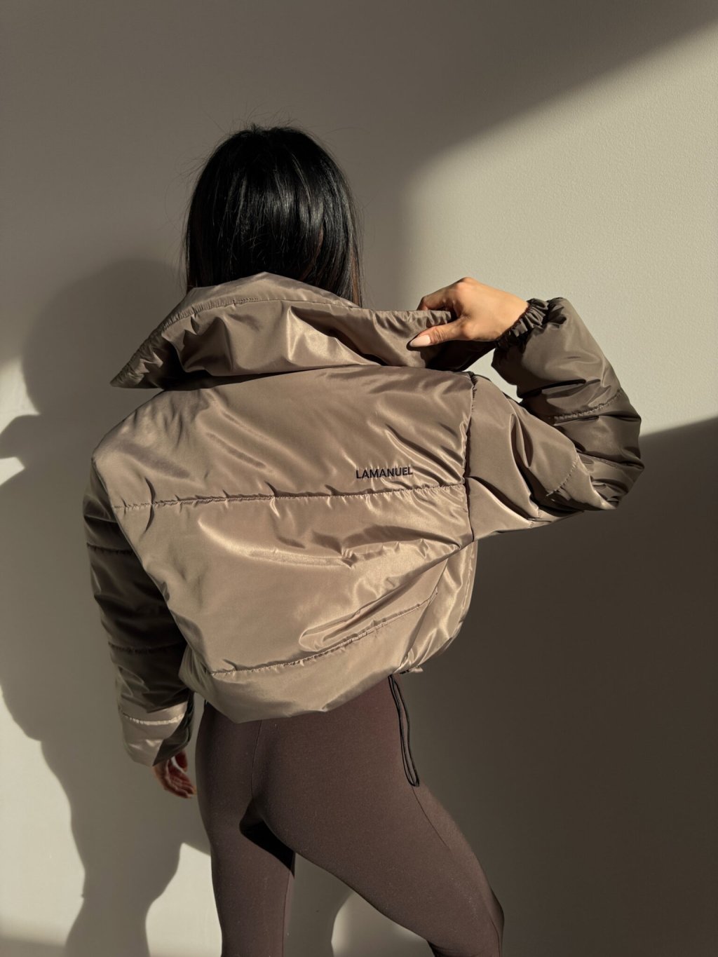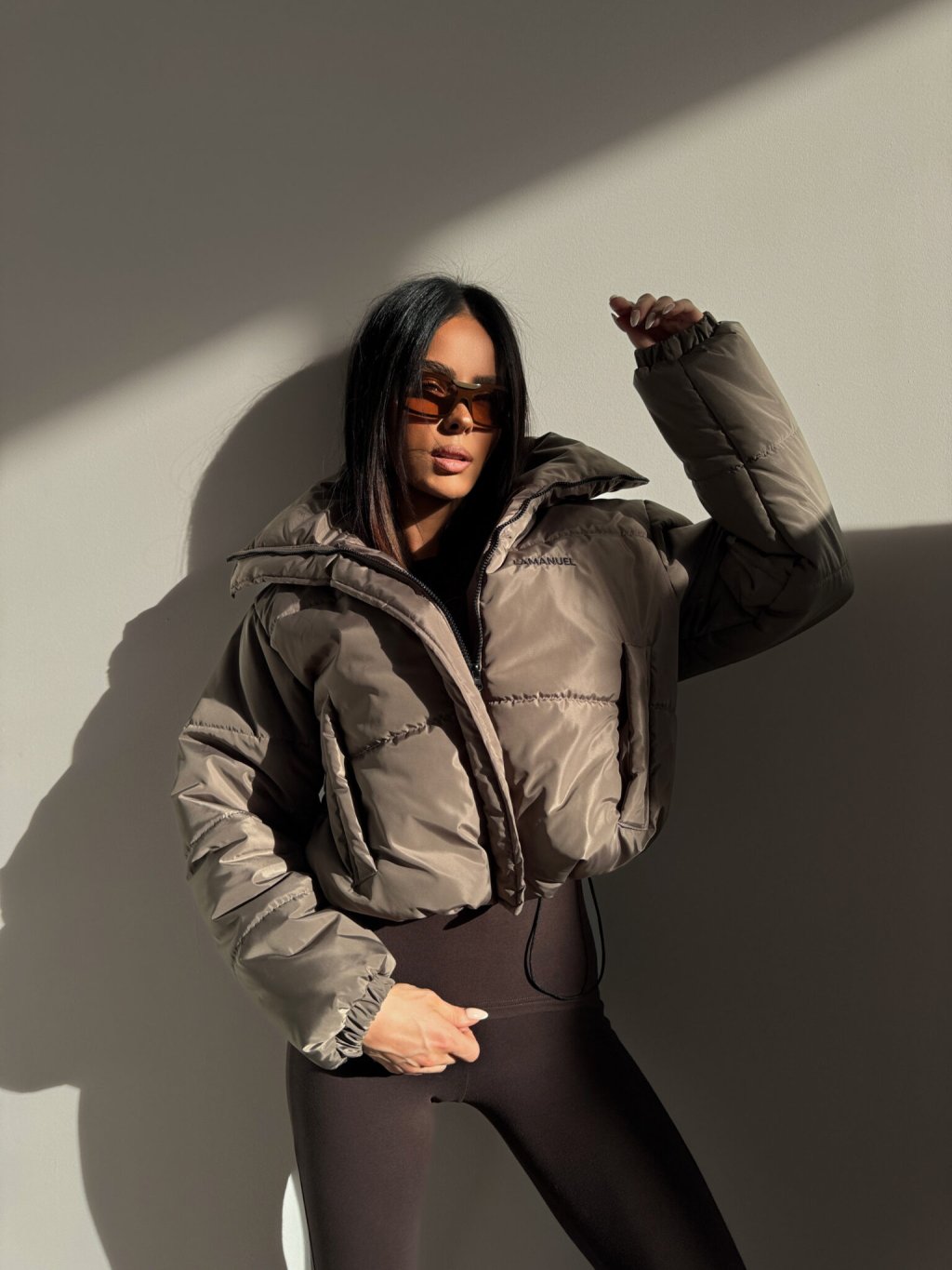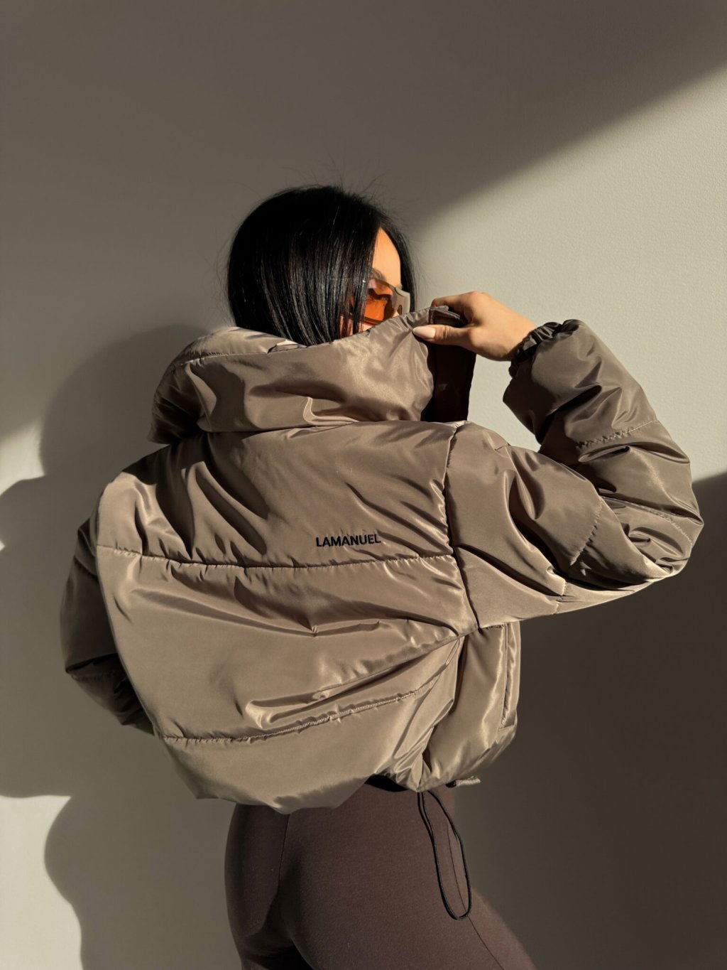 Zimná bunda so silne vyplneným tvarom a vysokým golierom dodáva oversized efekt. Je ľahká, ale špecifická, s úpravou v spodnej časti a logom vpredu a vzadu, čo je klasika v štýle LAMANUEL – vyzerá dobre s legínami, teplákmi, ale aj robustnými topánkami, ležérne, ale celistvo.