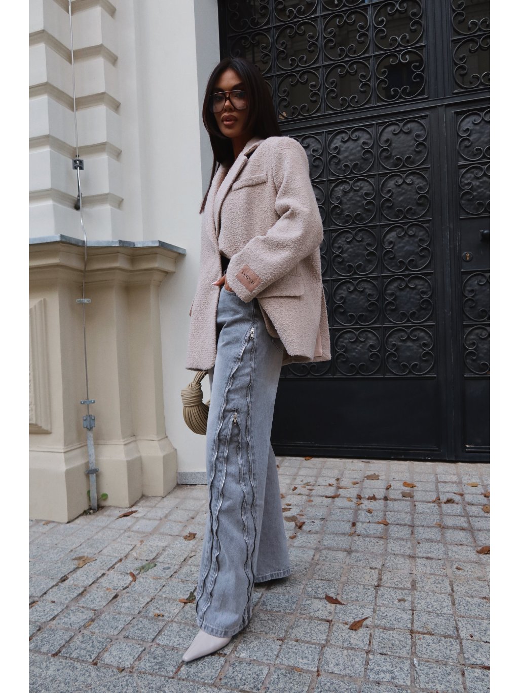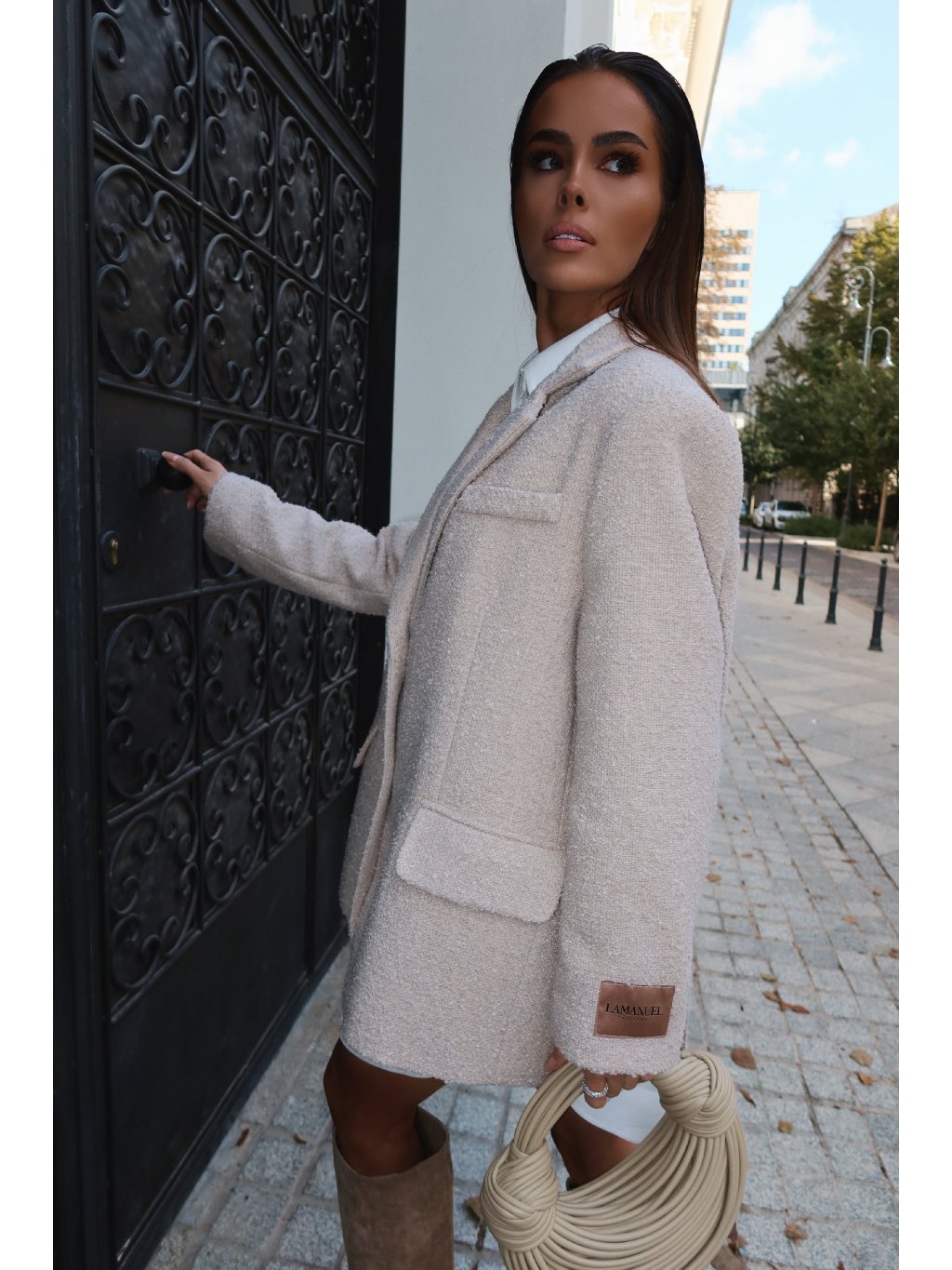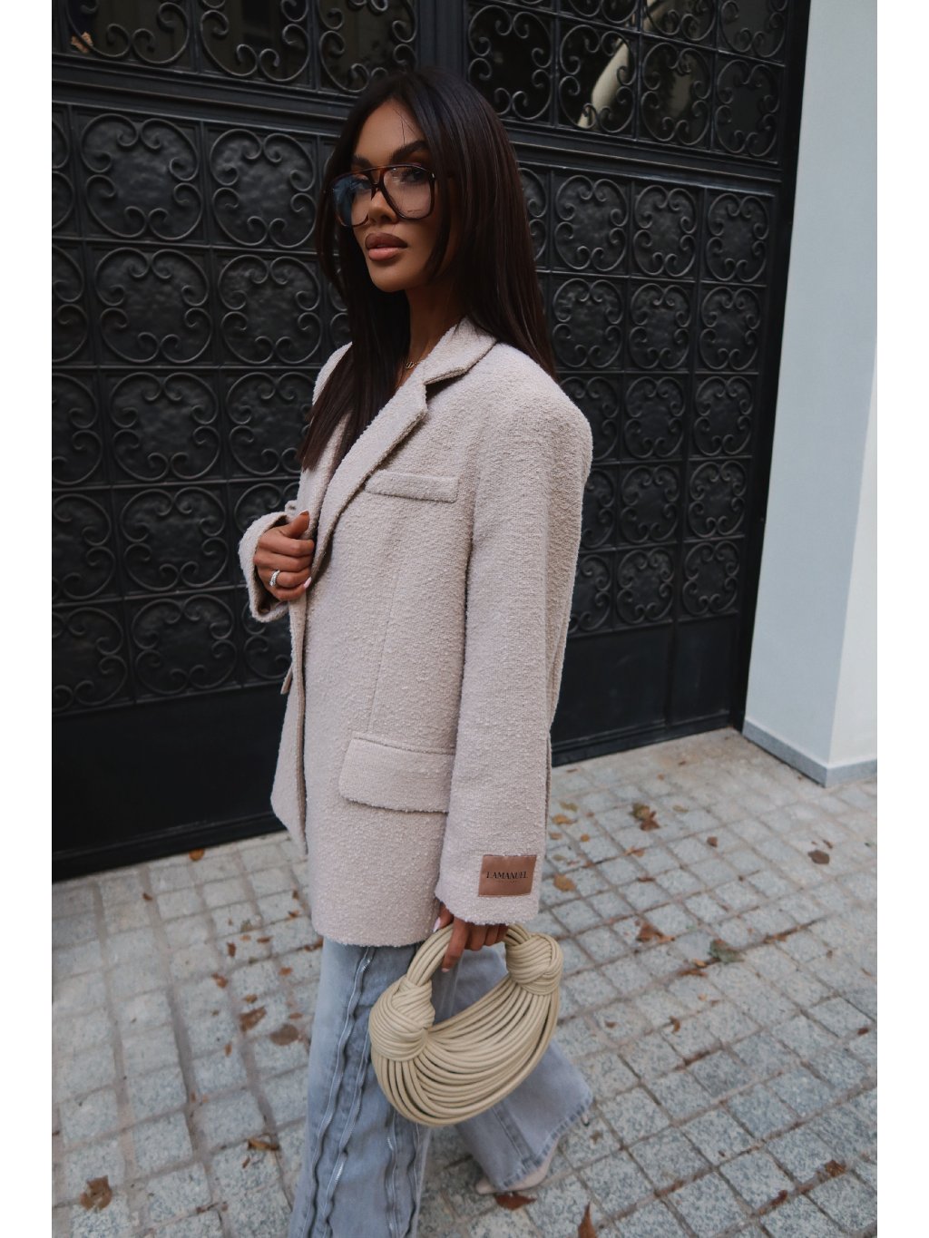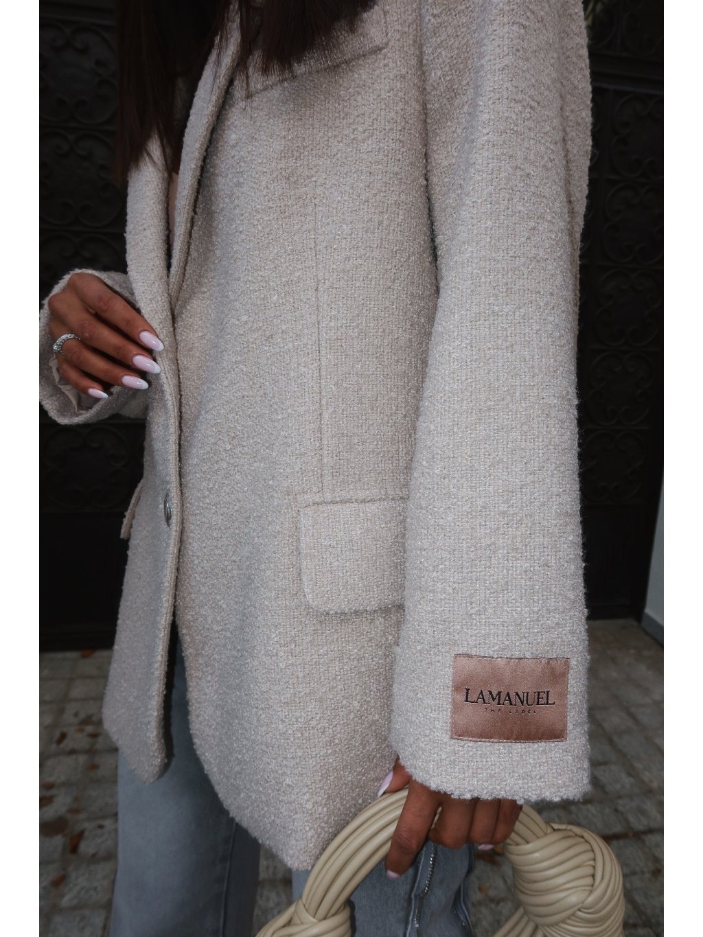 Sako s textúrou boucle s výraznou štruktúrou a rafinovaným strihom, ktorý vám umožní nosiť ho ako ľahký kabát. Mäkký, ale tvarovo pridržiavaný, so širokými klopami a ozdobnými gombíkmi sa bude dobre hodiť do elegantných aj každodenných outfitov. Ideálne pre vrstvené outfity – nosí sa cez košeľu, sveter alebo dokonca tenkú bundu. Štýlová alternatíva ku klasickému vrchnému oblečeniu.