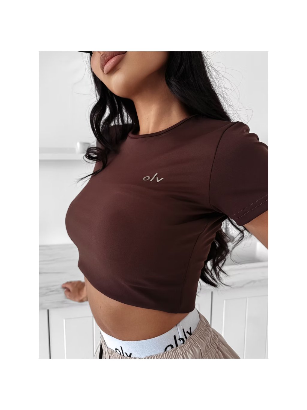 Dámske prilnavé tričko zvýrazňujúce vaše krivky z elastického materiálu a 3D logom olv.