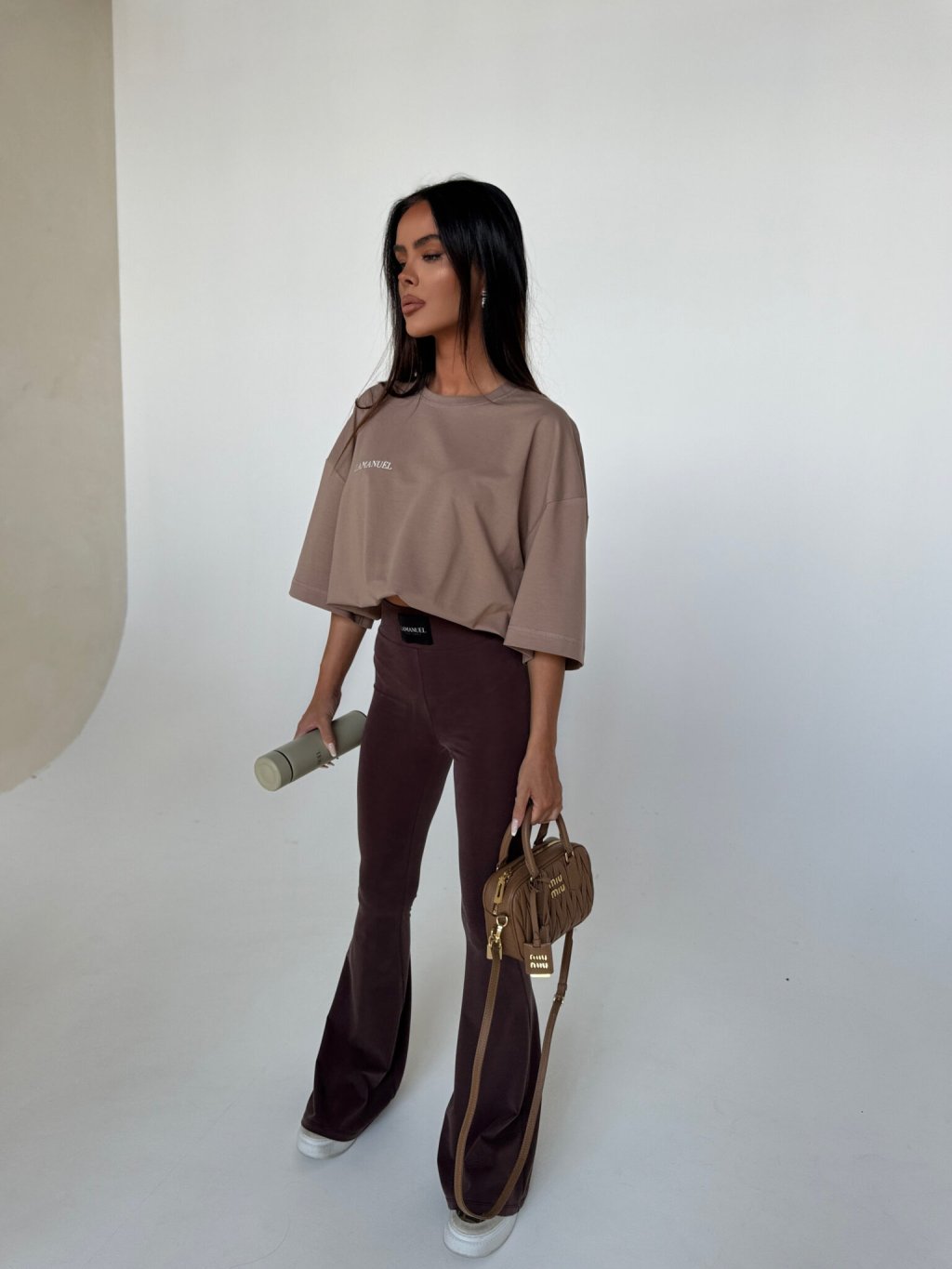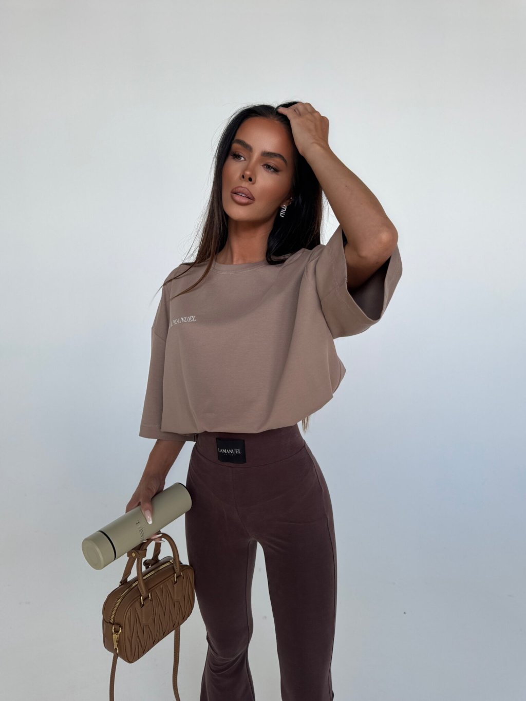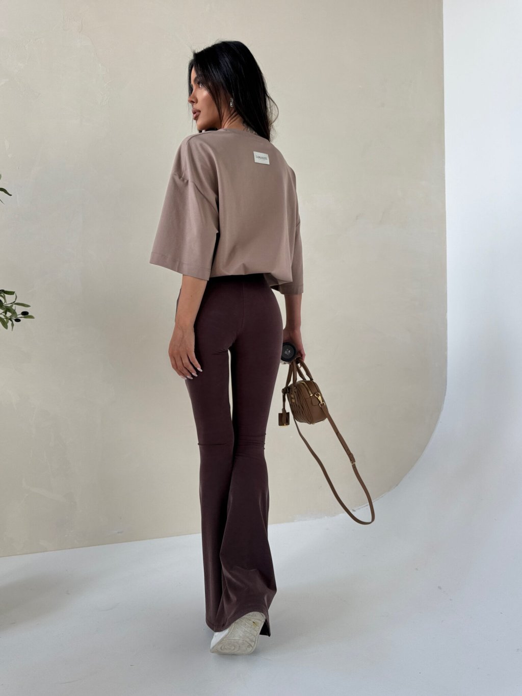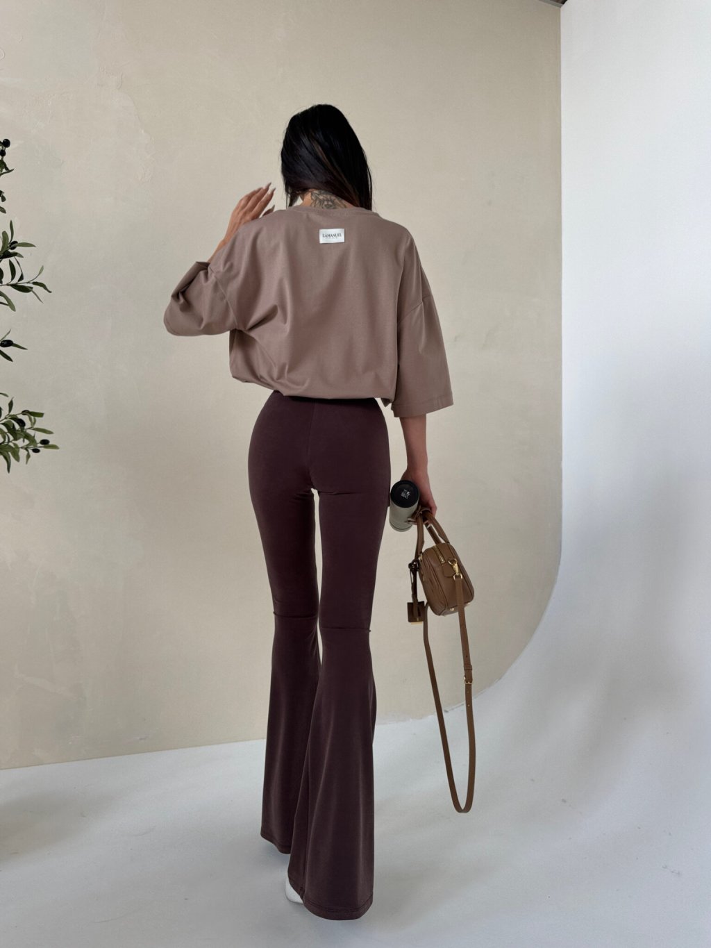 Priliehavé nohavice s rozšírenými nohavicami, vyrobené z mäkkého a elastického úpletu. Vysoký pás zvýrazňuje pás a zaisťuje pohodlie pri nosení, zatiaľ čo nohavice rozširujúce sa smerom nadol opticky predlžujú siluetu. Široký elastický pás s logom LaManuel dodáva výrazný charakter a nohavice dokonale priliehajú k telu. Model je ideálny ako pre každodenné outfity, tak aj pre športovejšiu verziu.