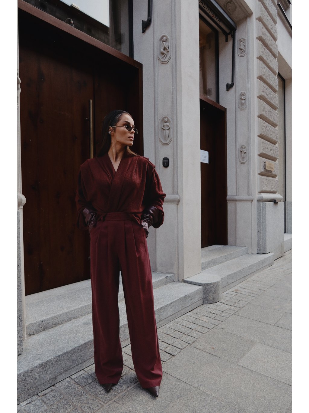 Elegantný strih s charakterom – široké nohavice, ľahký lesk a zips na boku, ktorý zdôrazňuje čistú líniu pása. Záhyby na prednej strane im dodávajú sofistikovanosť a vďaka rafinovanému tvaru dokonale zapadajú do pohybu. Ide o nohavice, ktoré zvládnu svoju prácu v celkovom vzhľade, ale dobre sa budú hodiť aj k základnému topu alebo hrubému svetru. Kancelársky, večerný alebo ležérny štýl v prémiovej verzii – vy sa rozhodnete.