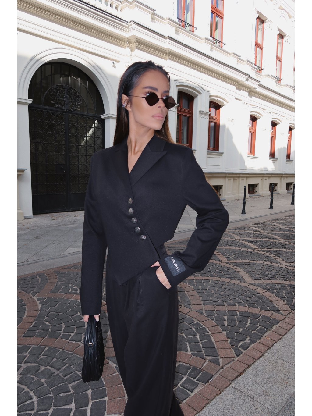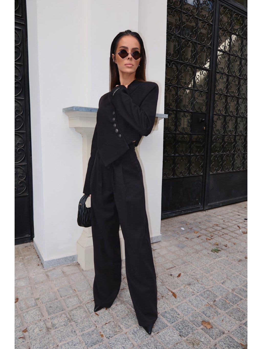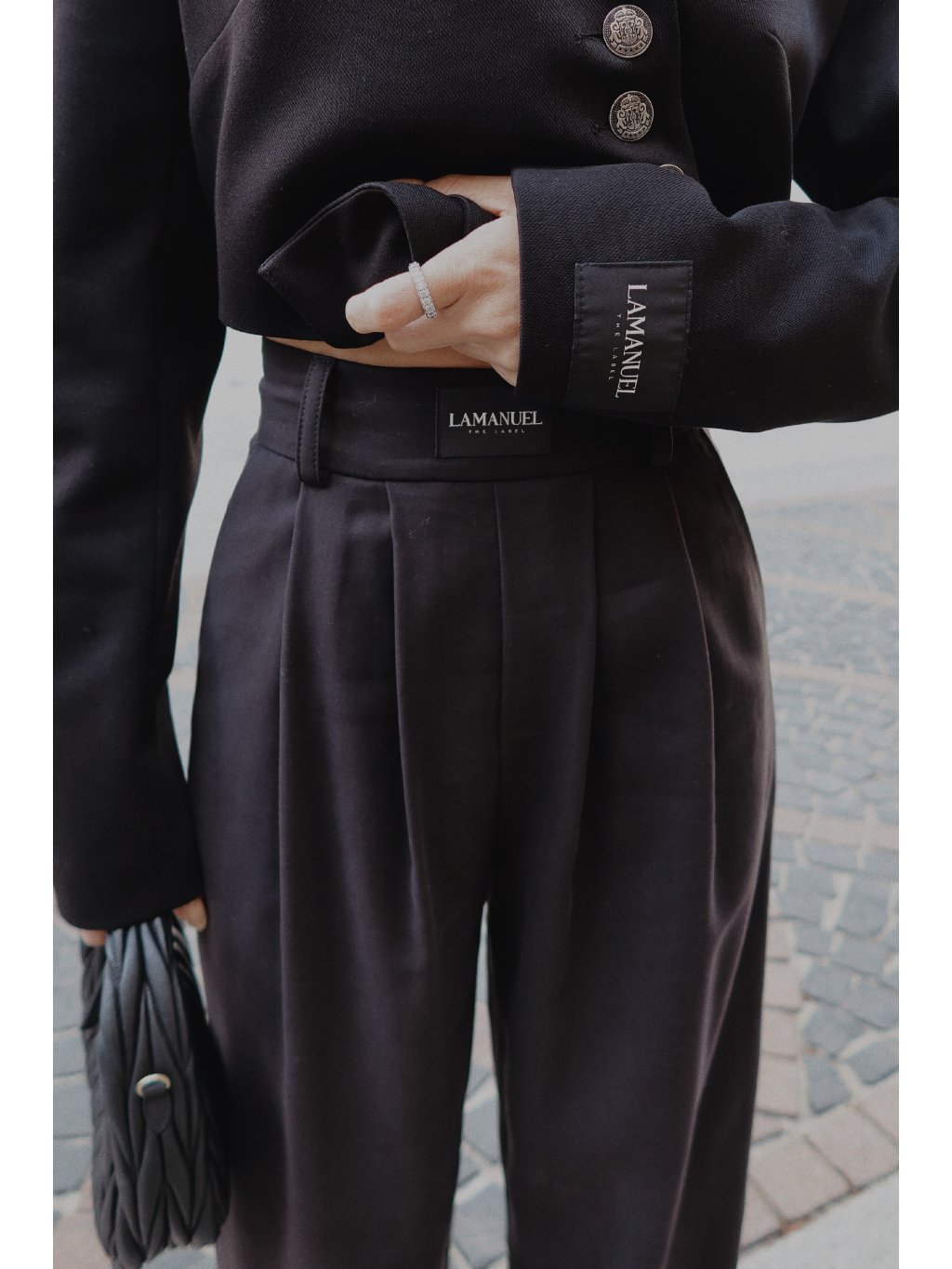 Elegantný strih s charakterom – široké nohavice, ľahký lesk a zips na boku, ktorý zdôrazňuje čistú líniu pása. Záhyby na prednej strane im dodávajú sofistikovanosť a vďaka rafinovanému tvaru dokonale zapadajú do pohybu. Ide o nohavice, ktoré zvládnu svoju prácu v celkovom vzhľade, ale dobre sa budú hodiť aj k základnému topu alebo hrubému svetru. Kancelársky, večerný alebo ležérny štýl v prémiovej verzii – vy sa rozhodnete.