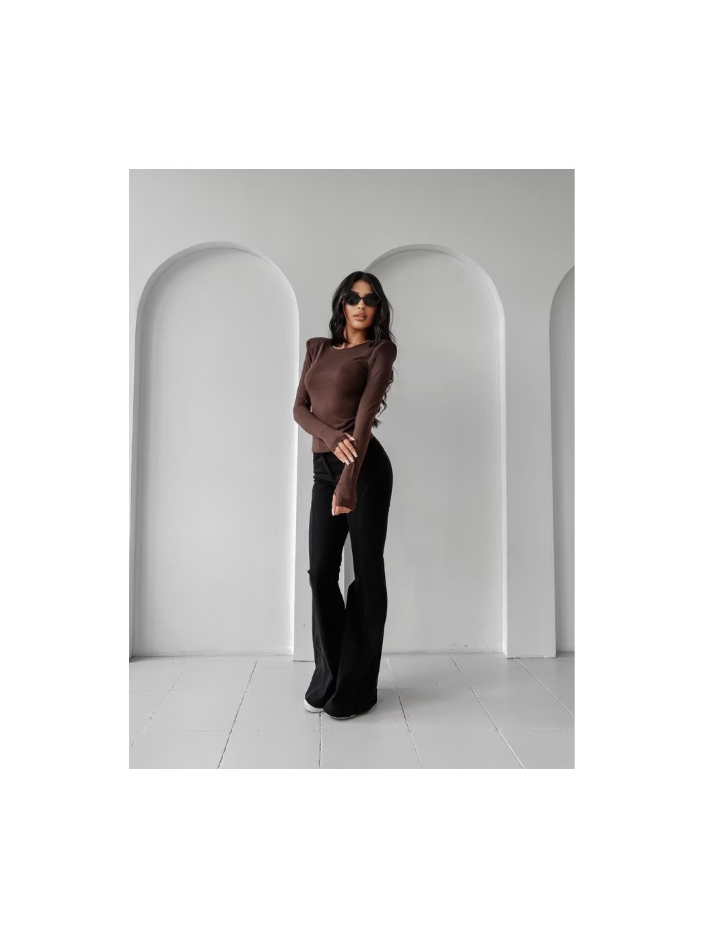 Dámske tričko s dlhým rukávom s vypchávkami na ramenách.