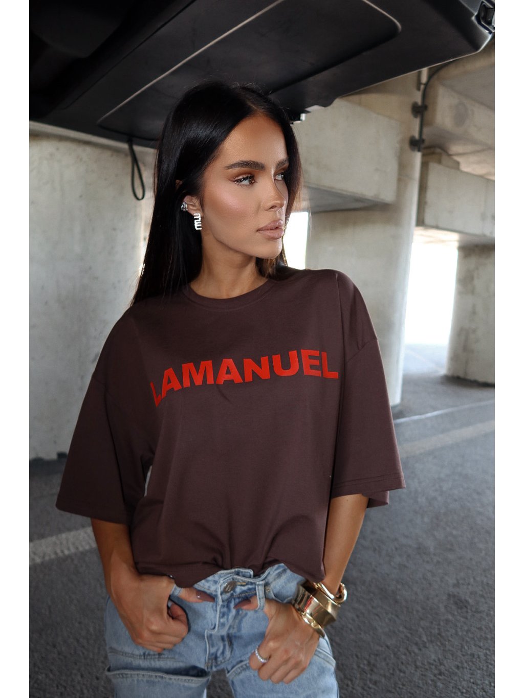 Oversized tričko voľného strihu z kvalitnej bavlny, zaisťujúce pohodlie a voľnosť pohybu. Jednoduchý strih s mierne zníženou líniou ramien, ktorý perfektne sedí na postave a hodí sa k rôznym outfitom – športovým aj ležérnejším. Na prednej strane je vytlačené logo LAMANUEL v kontrastnej povrchovej úprave, ktorá je pútavá a charakteristická. Tričko bude dobre vyzerať ako v kombinácii s teplákovými súpravami, legínami, tak aj s džínsami či šortkami.