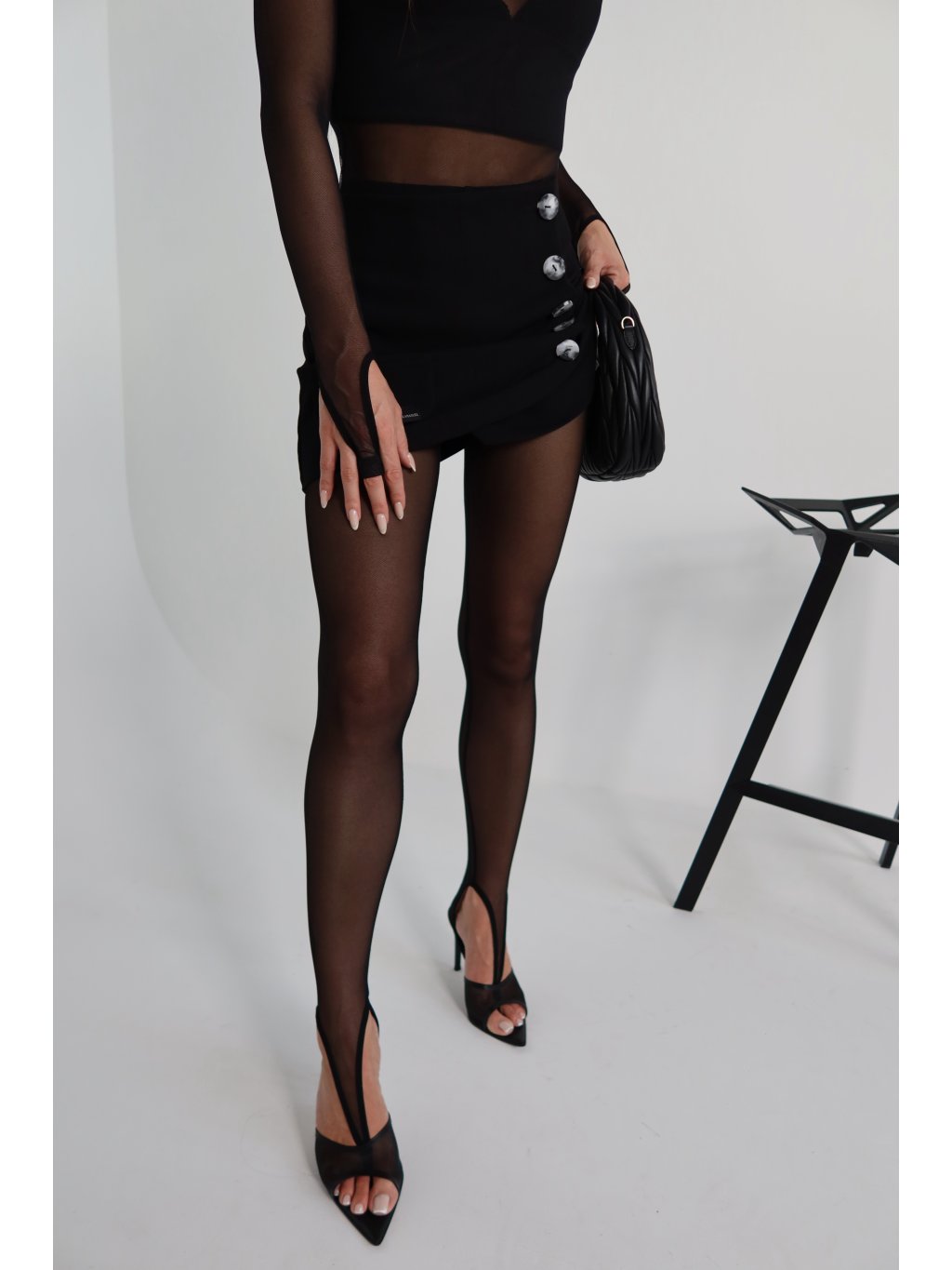 Legíny z polopriehľadnej elastickej sieťoviny, ktorá jemne obopína telo a zvýrazňuje nohy. Ľahký, priedušný materiál s jemným leskom – ideálny pre vrstvené outfity alebo ako výrazný sólový akcent. Vysoký pás a elastický pás zaisťujú pohodlné nosenie, zatiaľ čo úzky strih predlžuje siluetu. Nevyhnutnosť pre fanúšikov odvážneho, módneho vzhľadu.