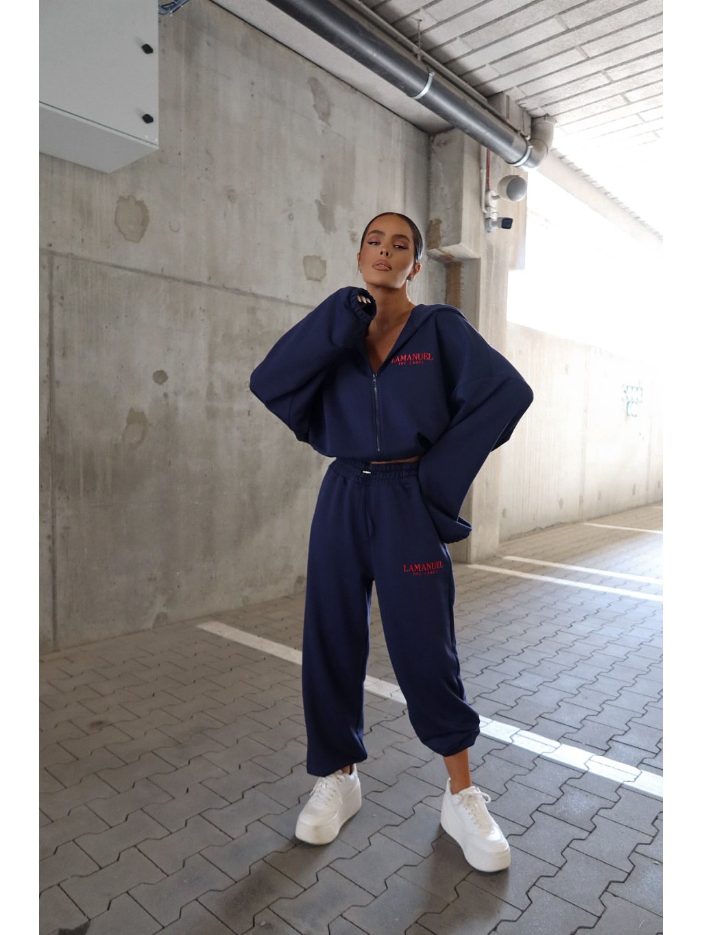 Široké tepláky, štylizované ako pánske s vysokým pásom a elastickým pásom a prídavnou sťahovacou šnúrkou na nastavenie. Široké, rovné nohavice a pohodlný strih zaisťujú pohodlie a voľnosť pohybu. Na bokoch je viditeľné logo LAMANUEL, ktoré koherentne ladí s mikinou BASIC pre vytvorenie kompletnej, módnej súpravy. Nohavice, aj keď sú široké, perfektne sedia od veľkosti XS-L.