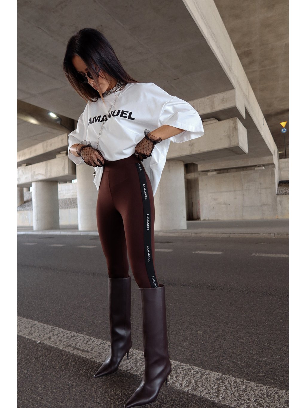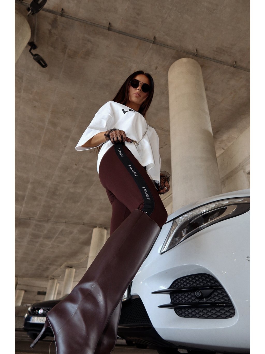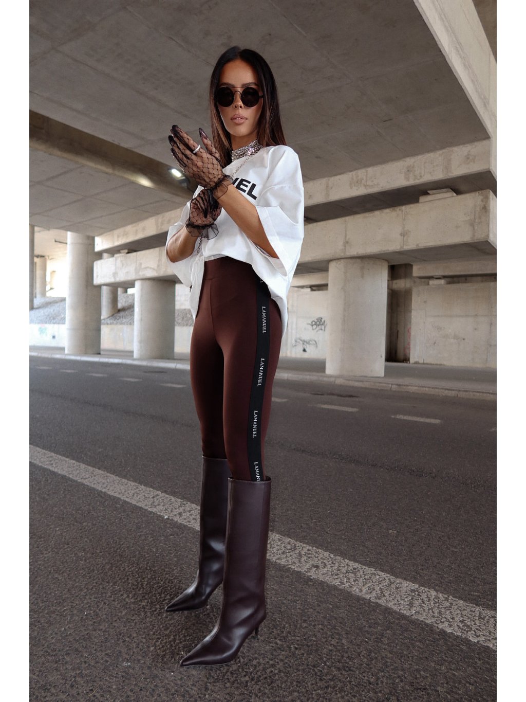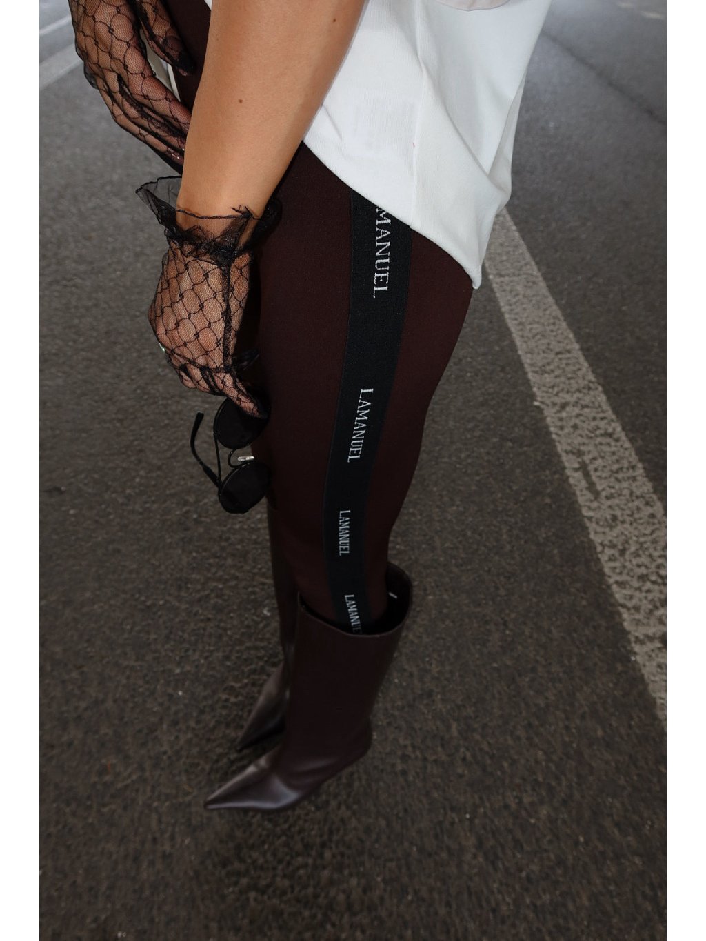 Tvarujúce legíny z elastickej lycry s výraznou pásom pozdĺž nohavíc s minimalisktým vzorom LaManuel. Vysoký pás krásne zvýrazňuje pás a priliehavý strih zvýrazňuje siluetu. Ideálne pre športové a mestské outfity, noste ich s oversized tričkami, mikinami alebo blejzrami.