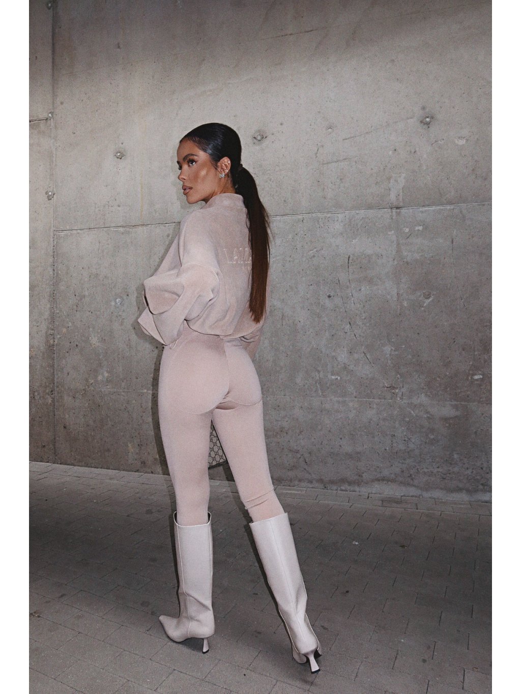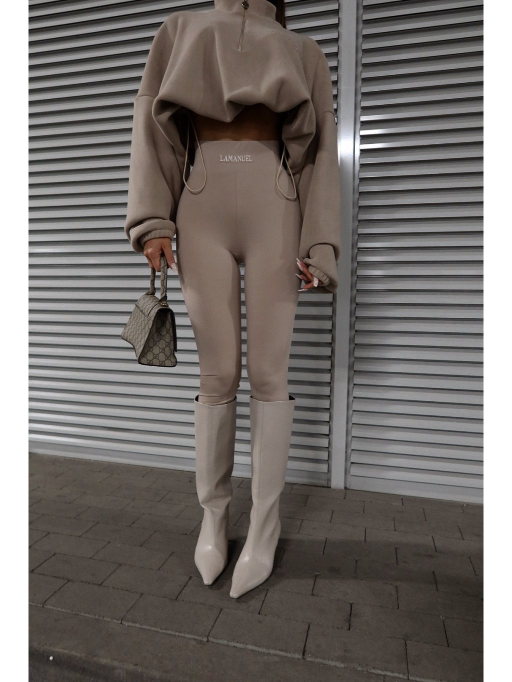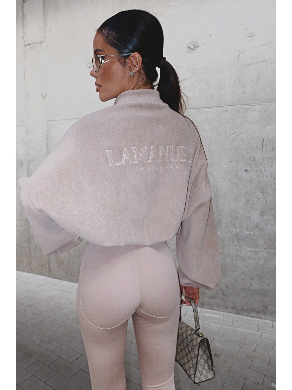 Vypasované legíny z matnej lycry so zdvíhajúcim zadkom. Elastický, hladký materiál dobre kryje a prispôsobuje sa postave, poskytuje pohodlie a jemný tvarovací efekt. Vysoký pás a široká guma držia legíny na svojom mieste a zdôrazňujú siluetu. Vzadu sú špeciálne prešívané s push-up efektom, ktoré opticky zdvíhajú a zaobľujú zadok. Vyšívané logo LAMANUEL na prednej strane. Model je ideálny pre každodenný, športový aj mestský styling.
