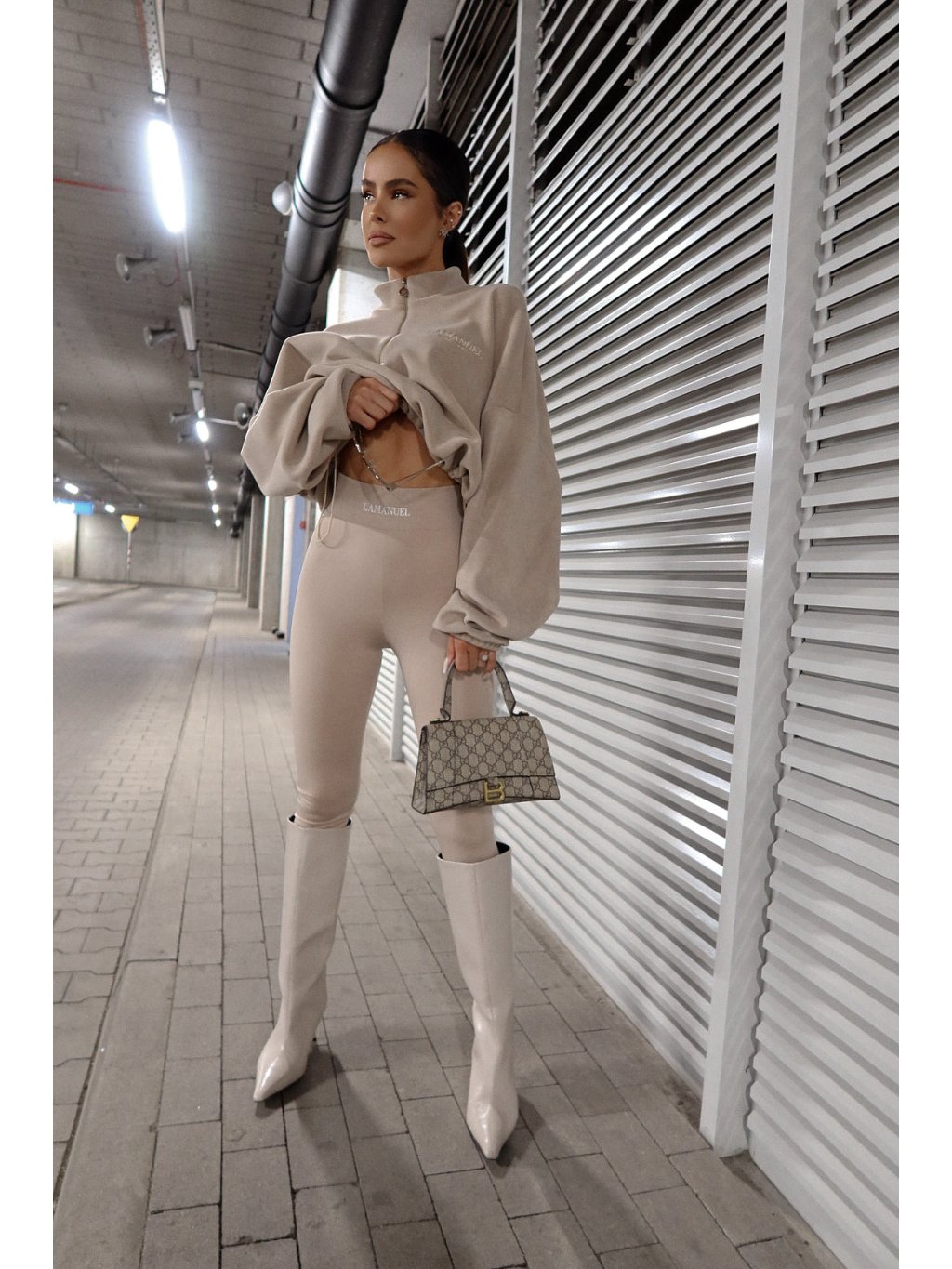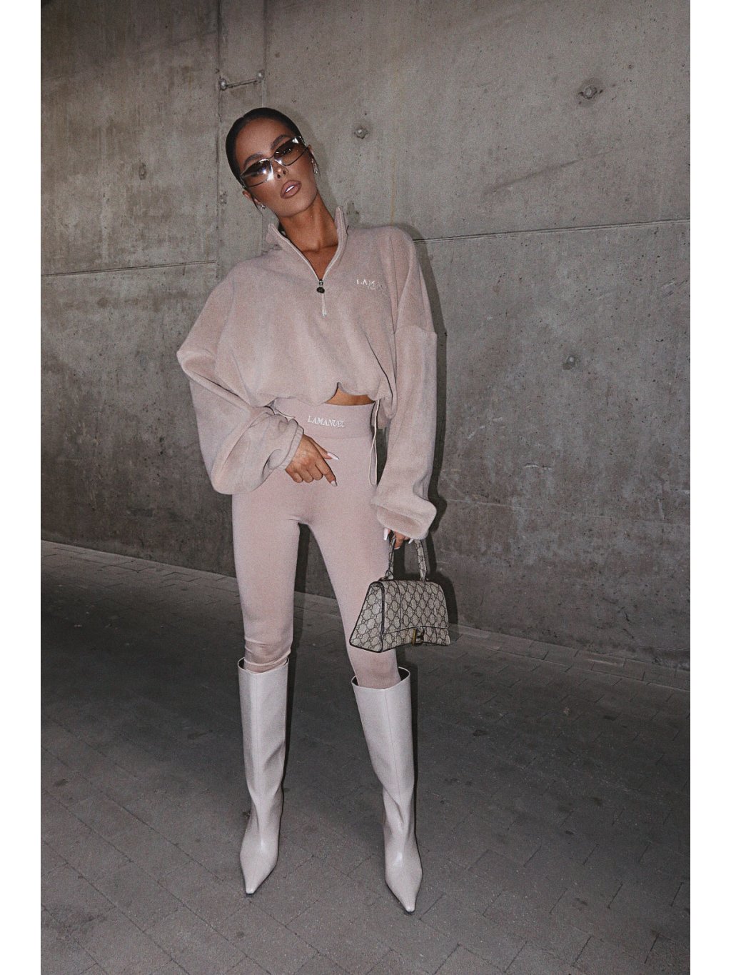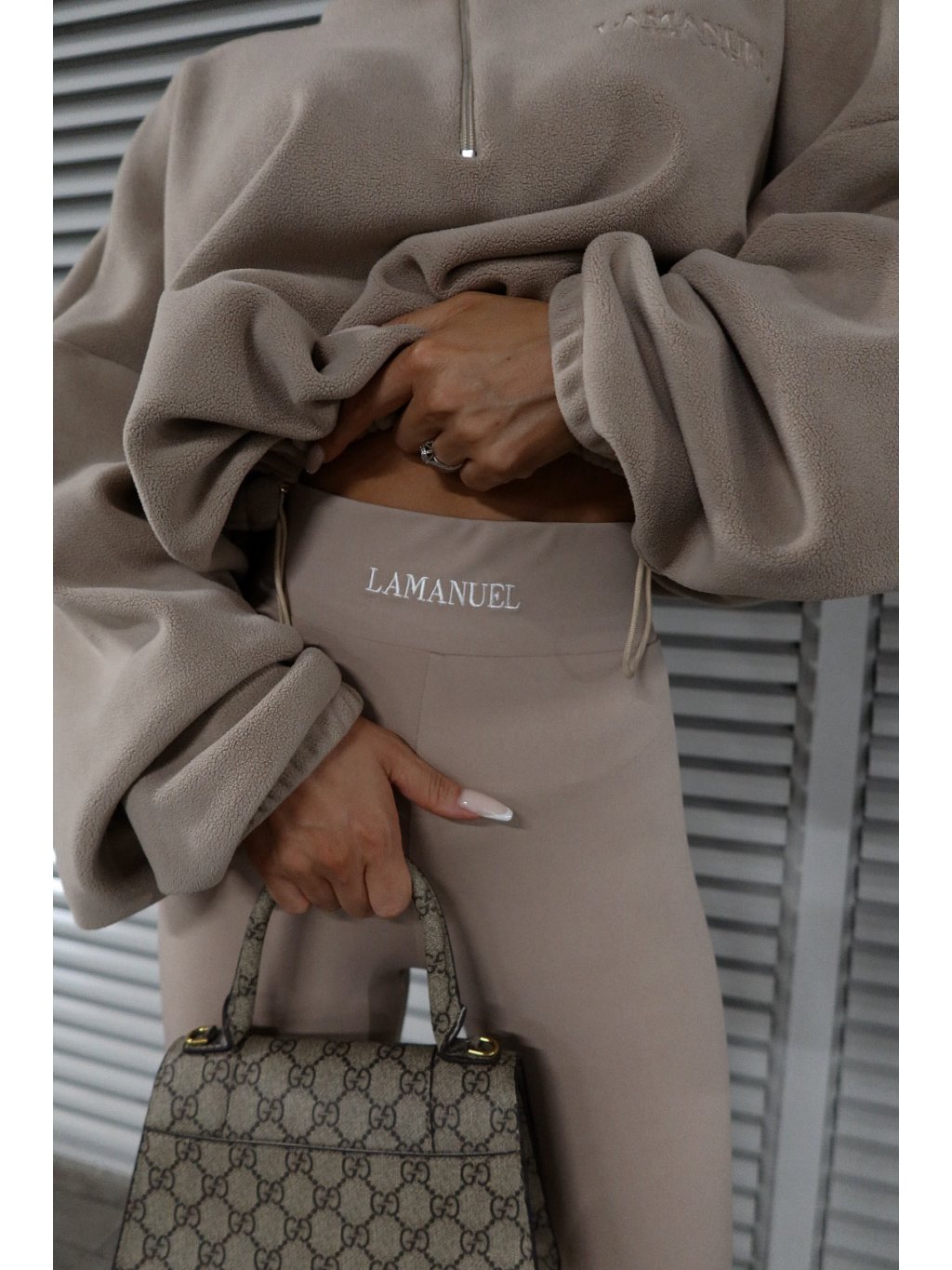 Vypasované legíny z matnej lycry so zdvíhajúcim zadkom. Elastický, hladký materiál dobre kryje a prispôsobuje sa postave, poskytuje pohodlie a jemný tvarovací efekt. Vysoký pás a široká guma držia legíny na svojom mieste a zdôrazňujú siluetu. Vzadu sú špeciálne prešívané s push-up efektom, ktoré opticky zdvíhajú a zaobľujú zadok. Vyšívané logo LAMANUEL na prednej strane. Model je ideálny pre každodenný, športový aj mestský styling.