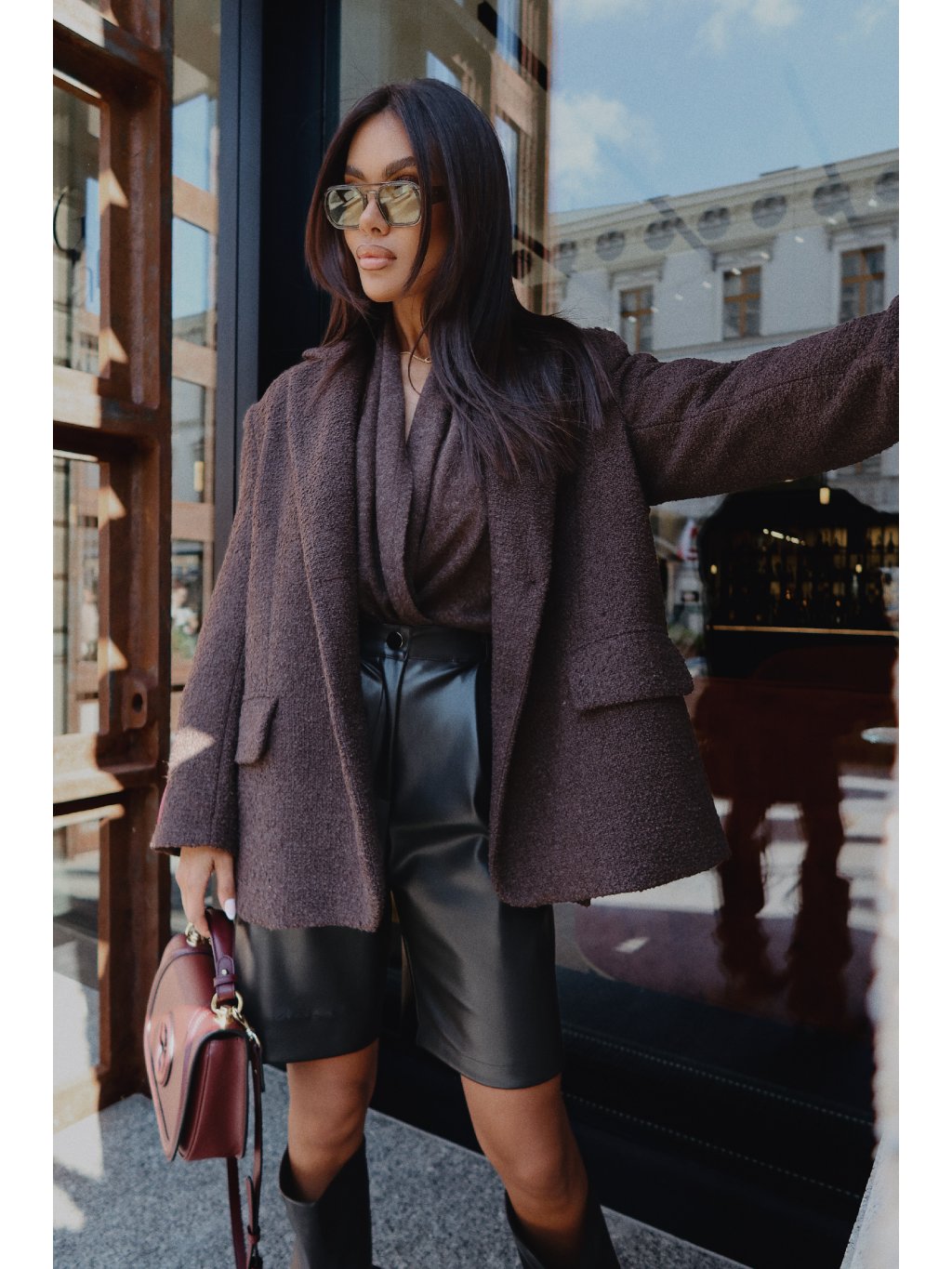 Mäkký kardigán ležérneho, mierne oversized strihu, ktorý môžete nosiť voľne alebo mierne zastrčený do nohavíc, ak chcete svojej postave dodať nejakú formu. Široké rukávy a štruktúrovaná línia ramien mu dodávajú charakter a na dotyk príjemný materiál zahreje ako hrejivý šál. Ideálne na chladnejšie dni – vyzerá štýlovo bez námahy, bez ohľadu na to, s čím ho spárujete. Hodí sa od veľkosti XXS po XL.