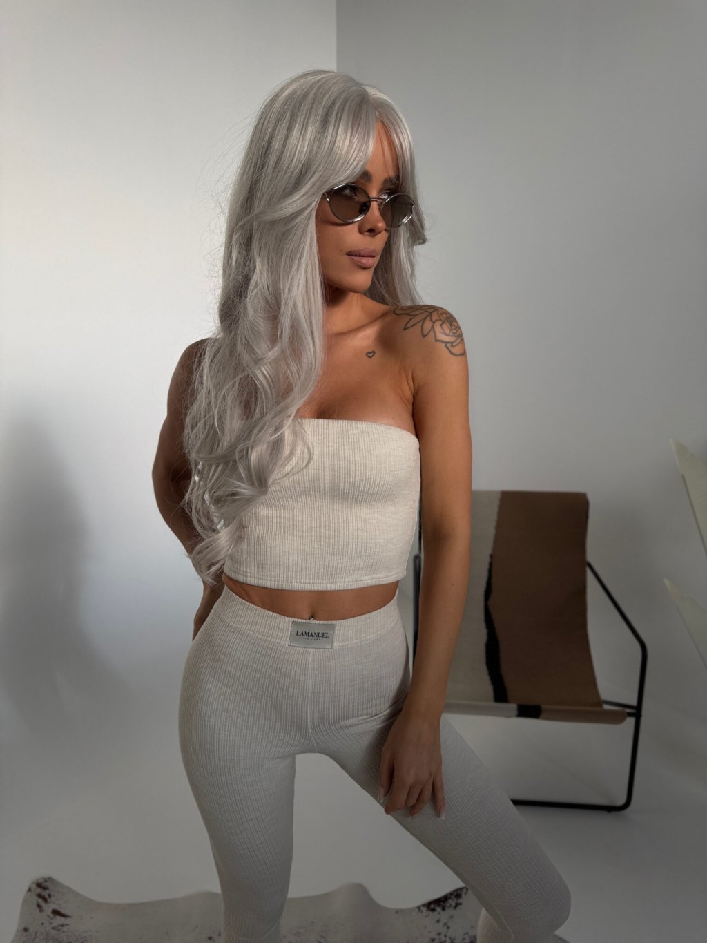 Rebrovaný pletený set, ktorý spája pohodlie s jemnou jednoduchosťou. Top bez ramienok a legíny s vysokým pásom vytvárajú súpravu, ktorá dokonale sedí postave a funguje doma aj na cestách. Elastický materiál ladí s telom a minimalistické logá pridávajú celku konzistenciu a charakter. Nenútený, ale premyslený – presne tak, ako to máme radi.