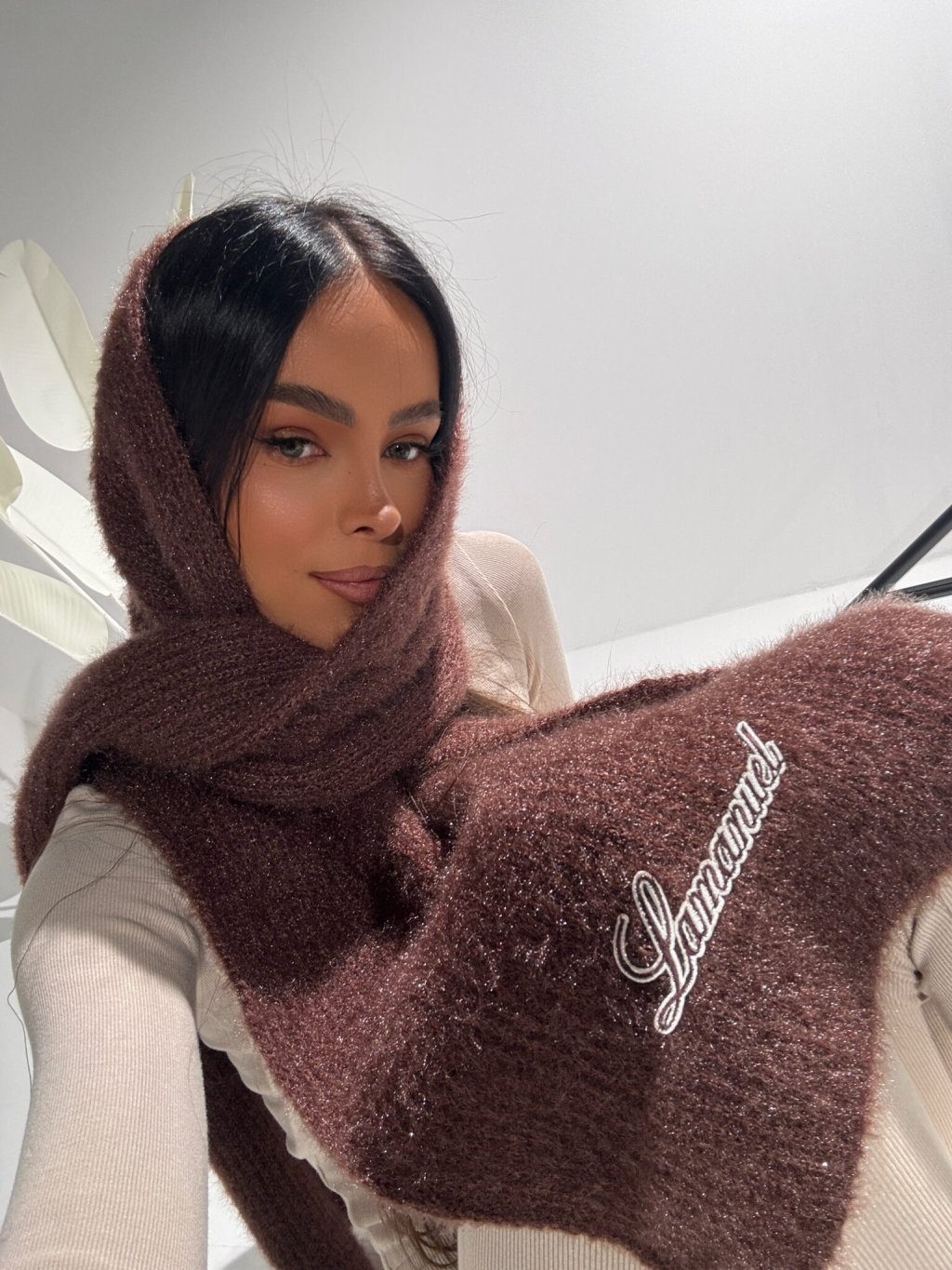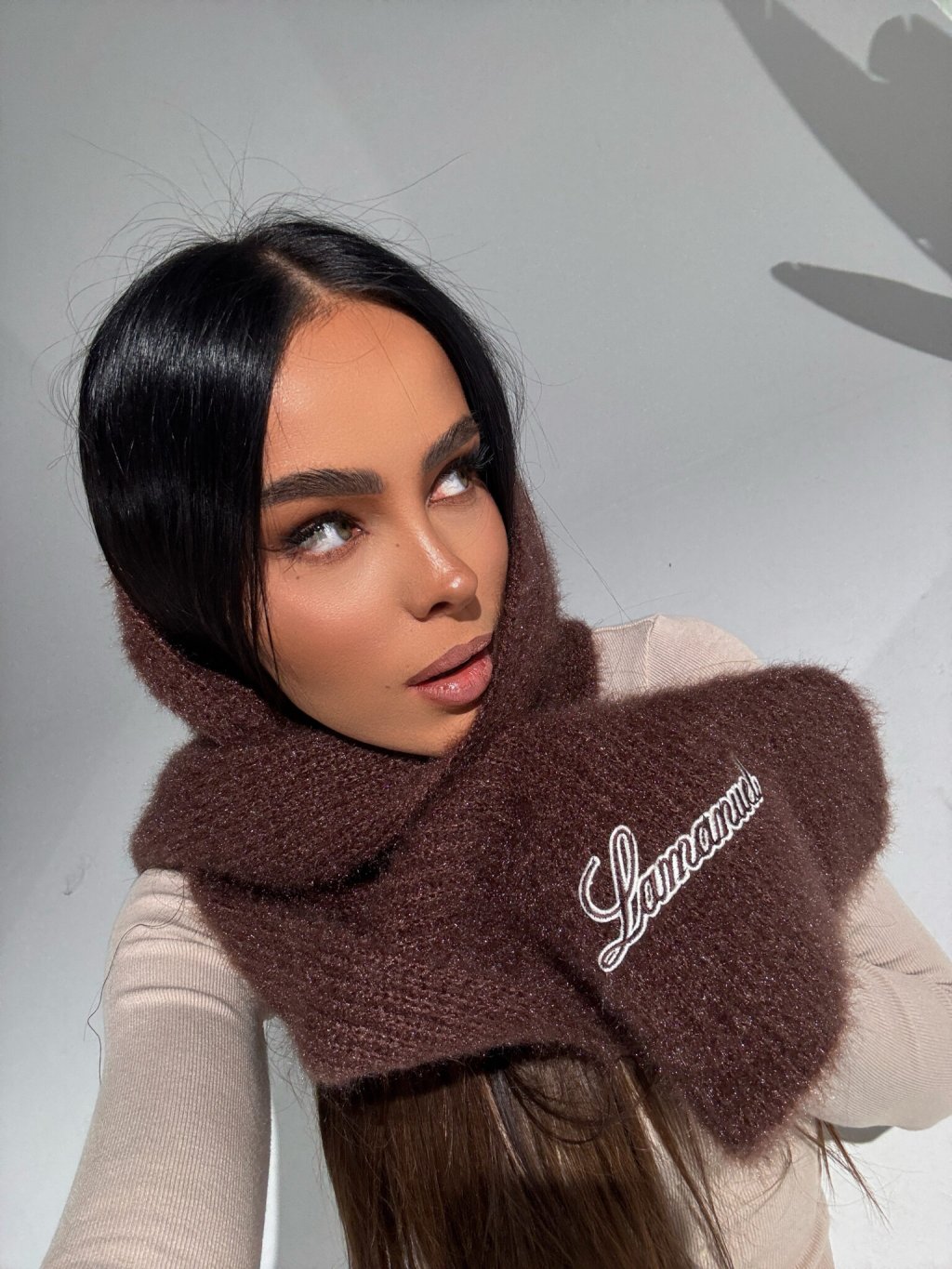 Šál s nadýchaným povrchom a výrazným symbolom vyšívaným na jednom konci. Vyrobený z rovnakej mäkkej priadze ako čiapka SNOWY – dokonale sa k nej hodí, ale aj samostatne vyzerá skvele. Ľahký, ale teplý – dobre sa rozkladá a dodáva objem stylingu. Je to dokonalý doplnok k jesenným a zimným outfitom, spájajúci funkčnosť s módou. Výborná voľba na väčšie kabáty a bundy.