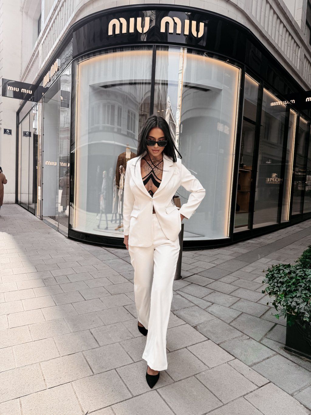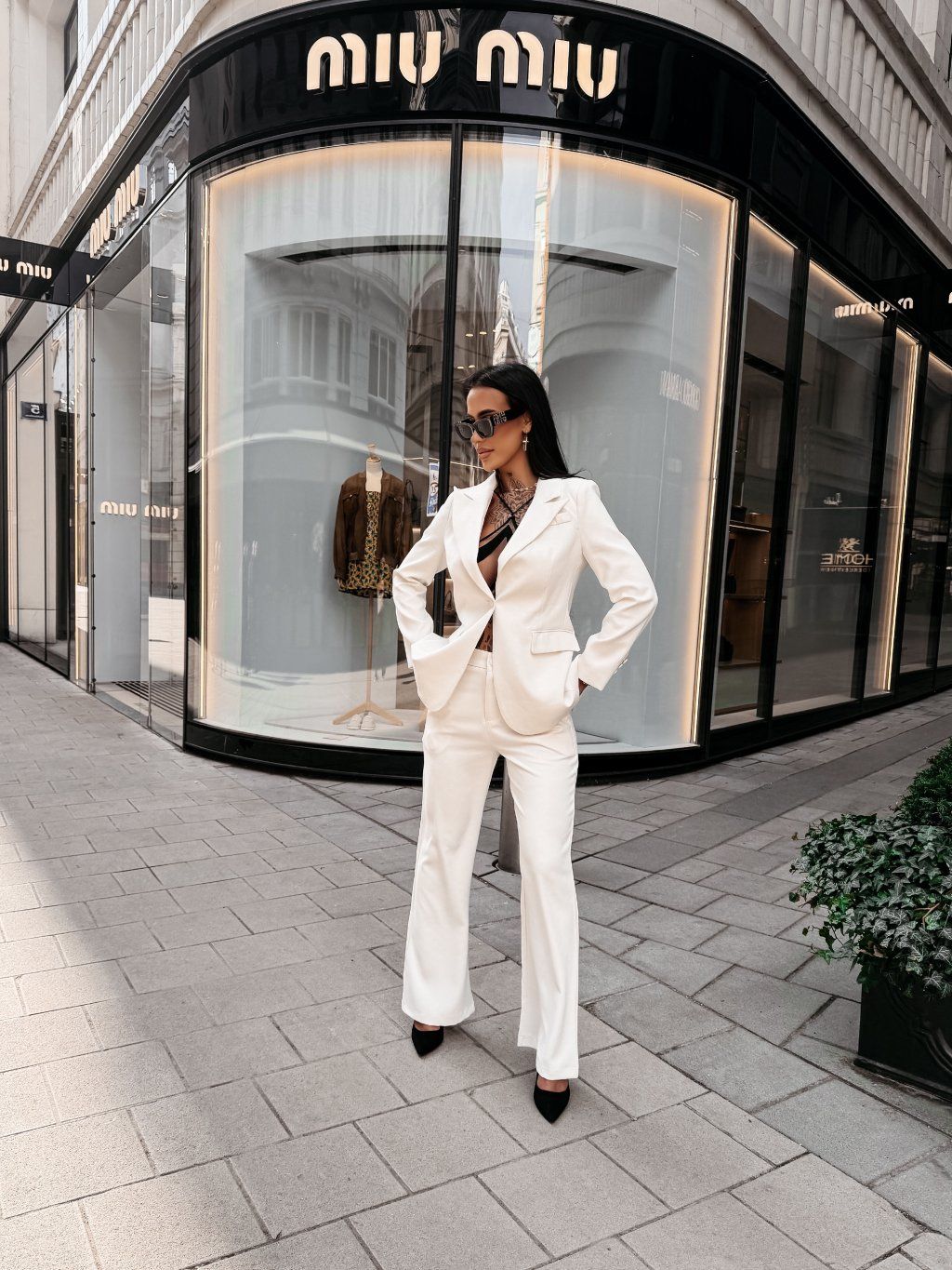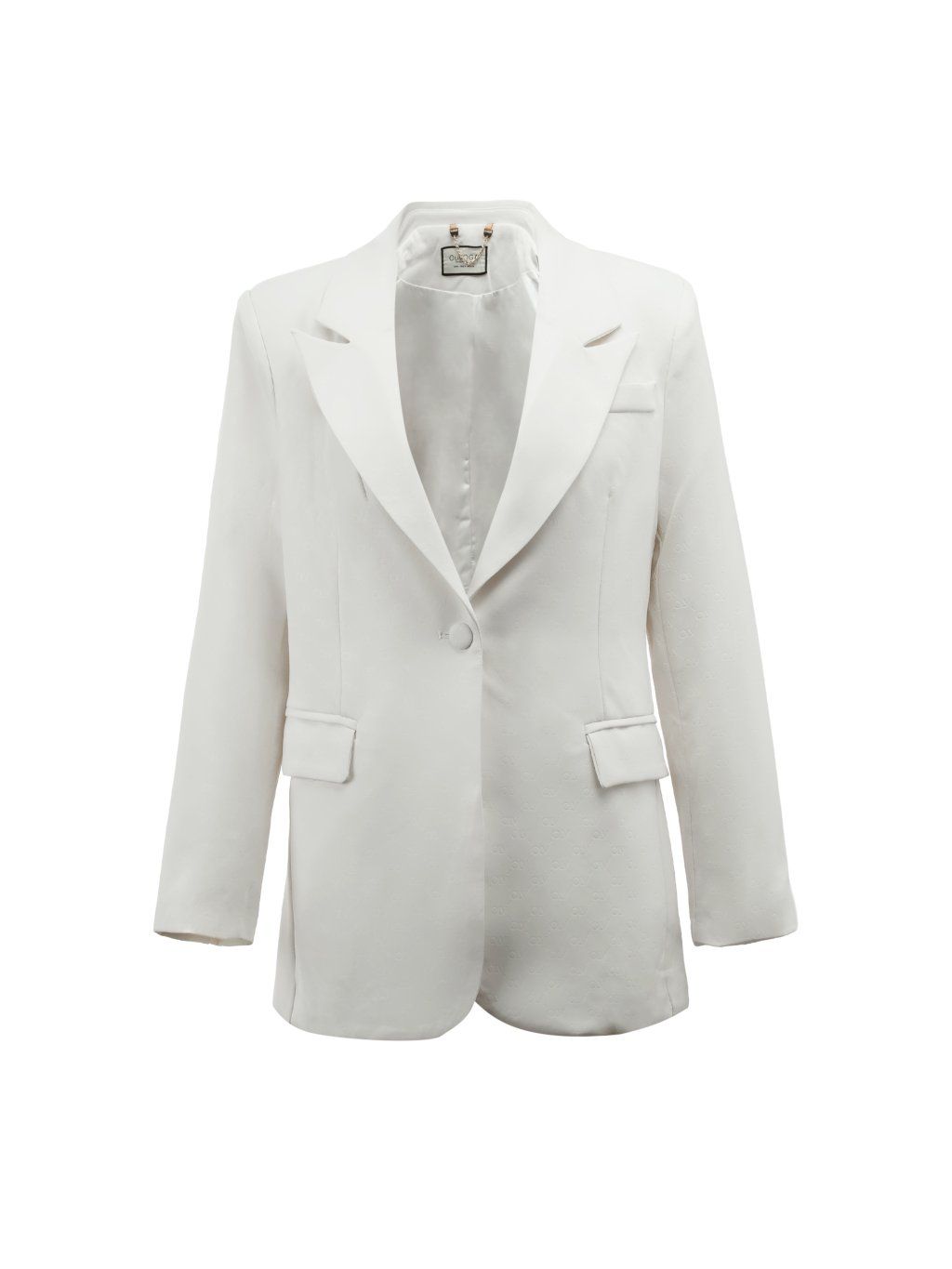 Dokonale padnúce sako v kombinácii s nohavicami vytvára čistý, sebavedomý look, ktorý pôsobí luxusne bez zbytočnej okázalosti. Jemná štruktúra materiálu s logom dodáva celému kúsku exkluzívny charakter.