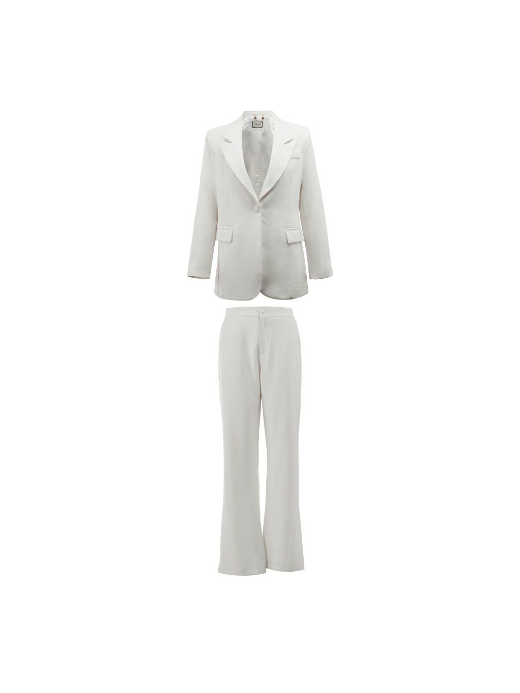 Sako má mierne priliehavý strih, ktorý zvýrazní siluetu bez toho, aby pôsobilo striktne. Nohavice majú rovný, elegantný strih, ktorý opticky predlžuje postavu a vytvára vyvážený celok.