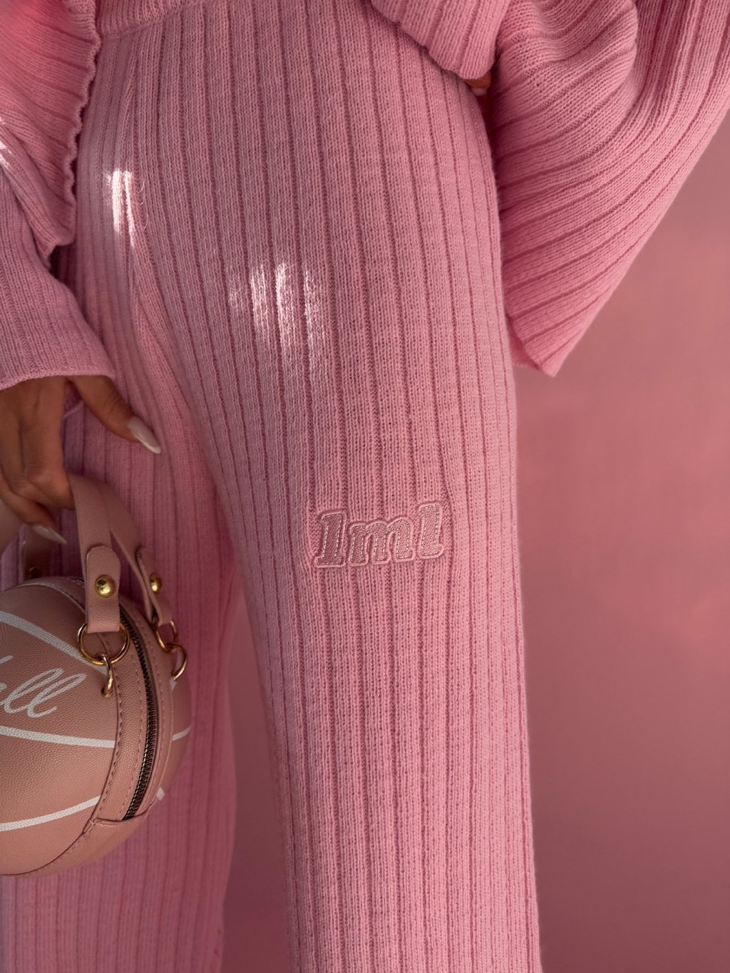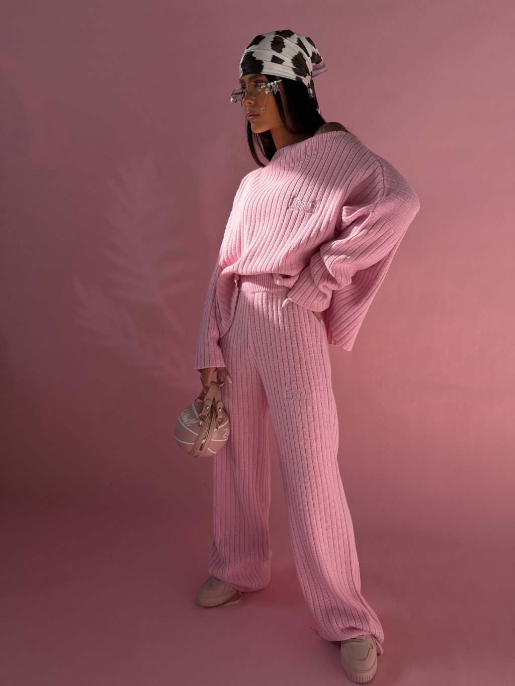 Komplet SWEETS ružová  Dámsky pletený set – sveter a nohavice