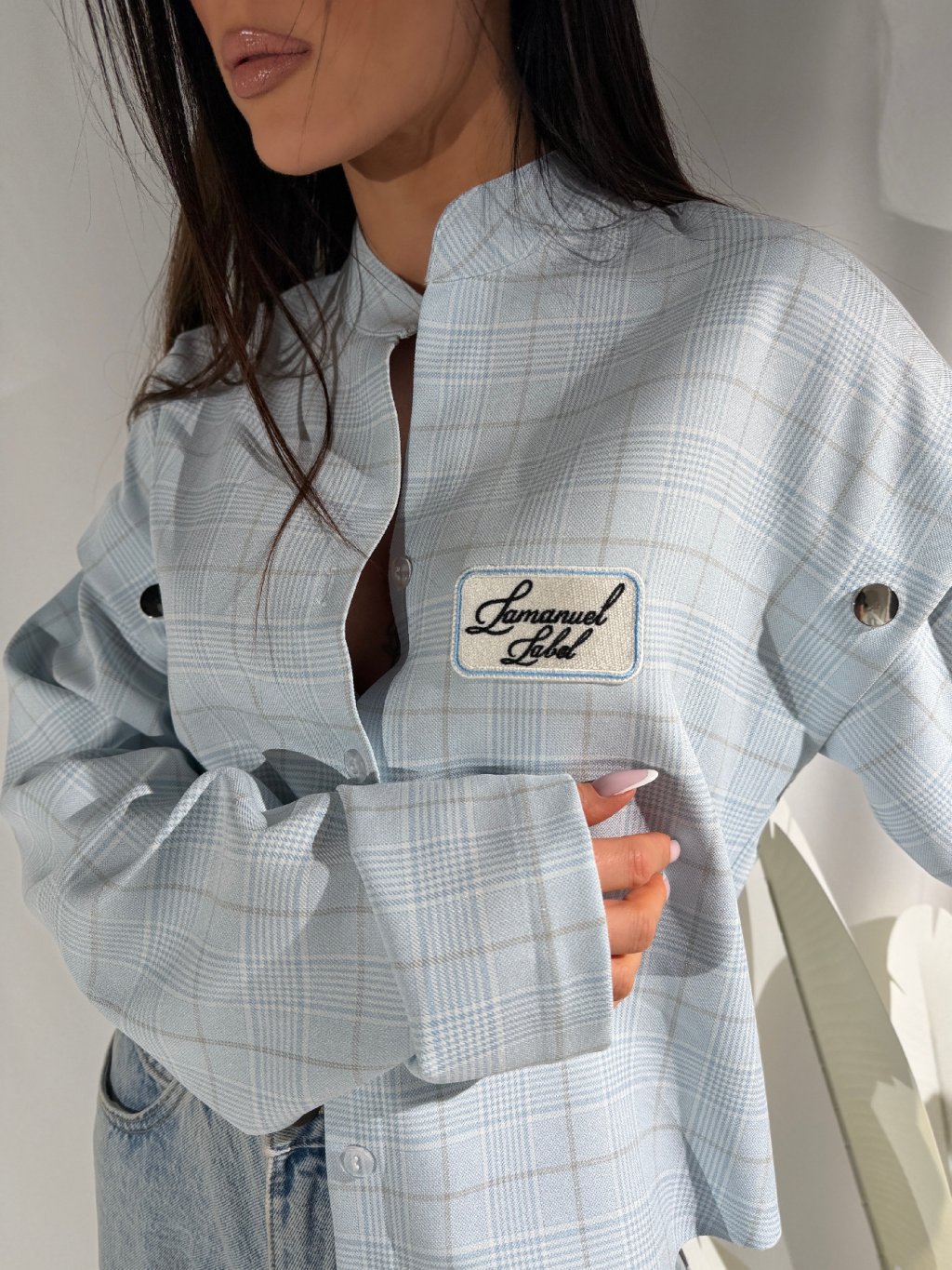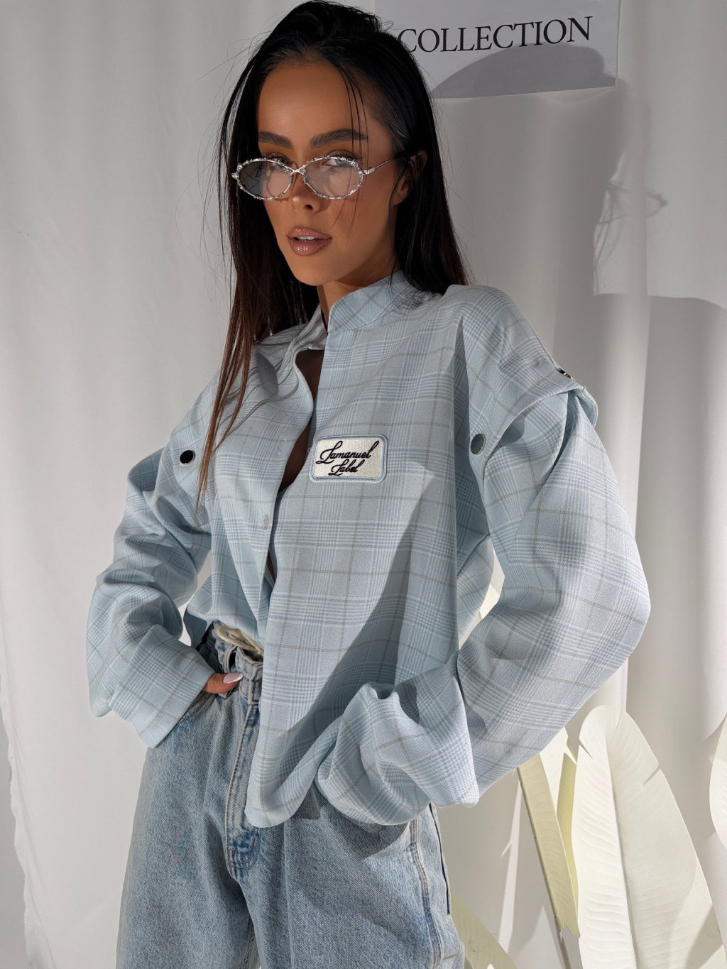 BLUE je oversized košeľa s jemnou károvanou potlačou a odnímateľnými rukávmi, vďaka ktorým ju môžeš nosiť klasicky alebo ako štýlovú vestu.
