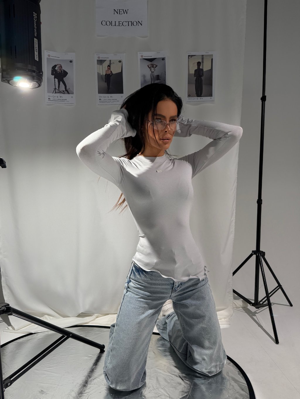 Predĺžené rukávy jemne prekrývajú dlaň a dodávajú modelu moderný detail. Spodný zvlnený lem zvýrazňuje líniu pásu a vytvára elegantný kontrast k rifliam, nohaviciam aj sukniam.