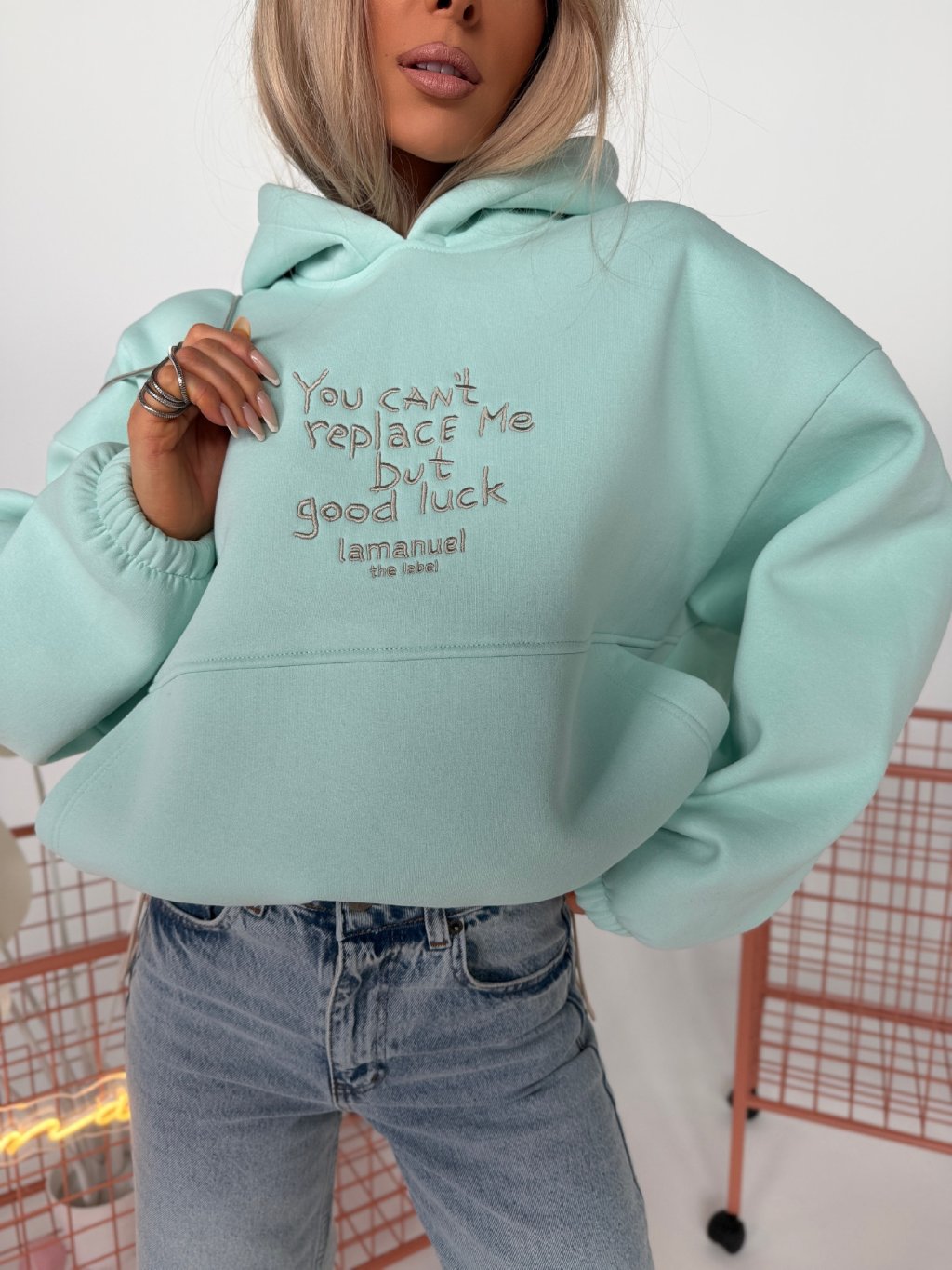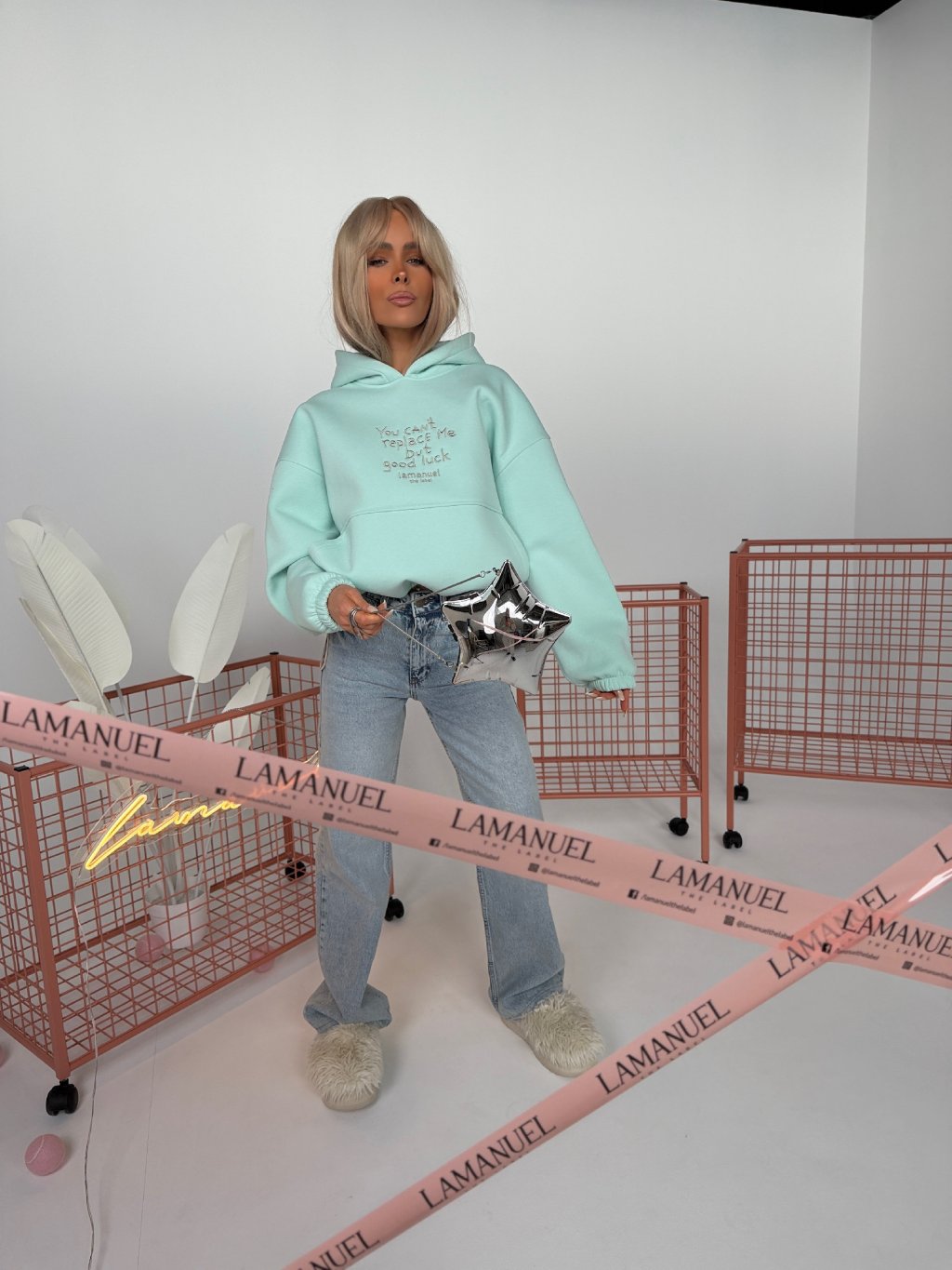 Oversize mikina BLOW UP s kapucňou a výšivkou - mint oversize strih, kapucňa, nastaviteľný spodok
