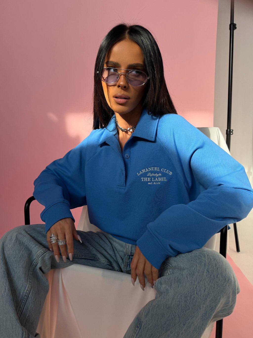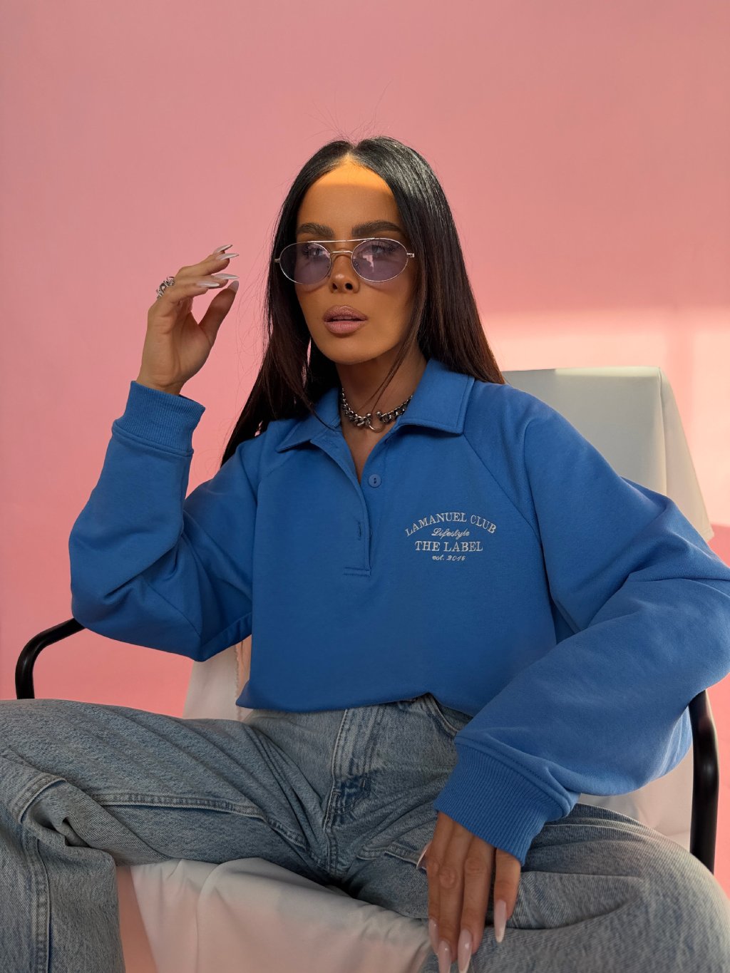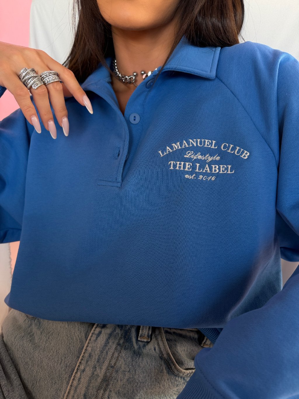 Bluza La CLUB łączy wygodę z nowoczesnym stylem. Doskonale pasuje do jeansów, legginsów lub spódnic, dzięki czemu sprawdzi się w wielu codziennych stylizacjach.