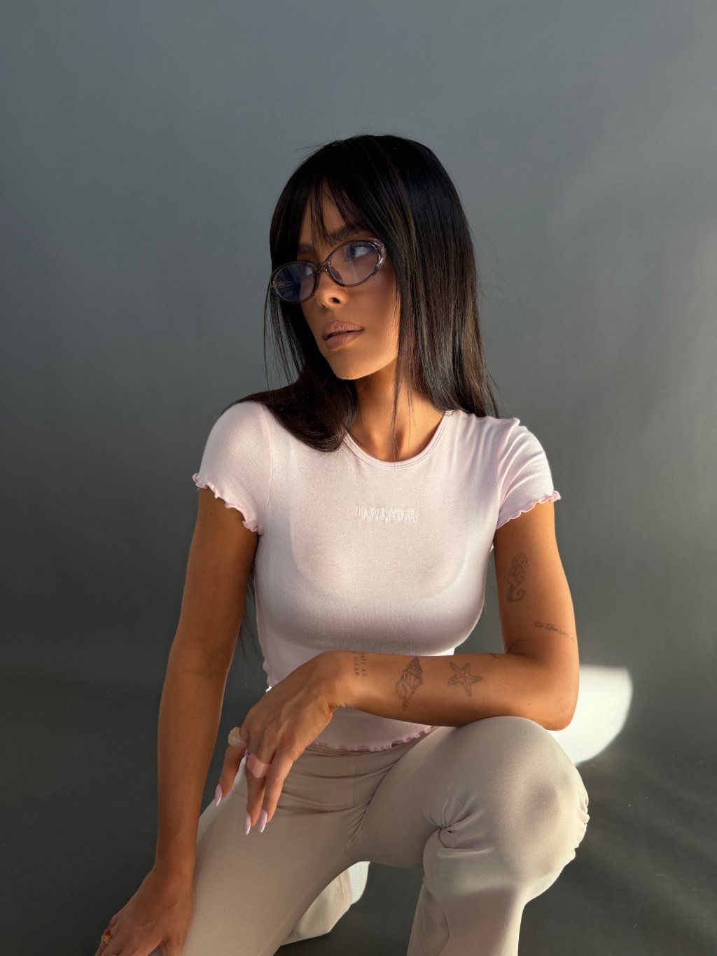 Priliehavý strih zvýrazňuje siluetu bez toho, aby pôsobil tesne. Krátke rukávy a jemne zakončené okraje dodávajú modelu ľahkosť a ženský charakter.