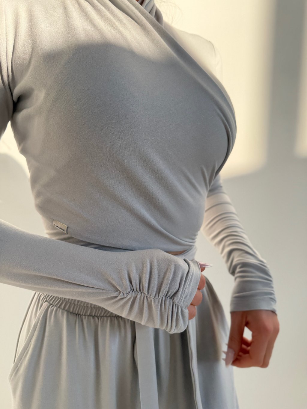 Top z jemnej, elastickej viskózy, ktorý prirodzene kopíruje postavu a pracuje s líniou tela. Krížený výstrih umožňuje nosenie dvoma spôsobmi - bližšie ku krku alebo s otvorenejším V efektom podľa stylingu.