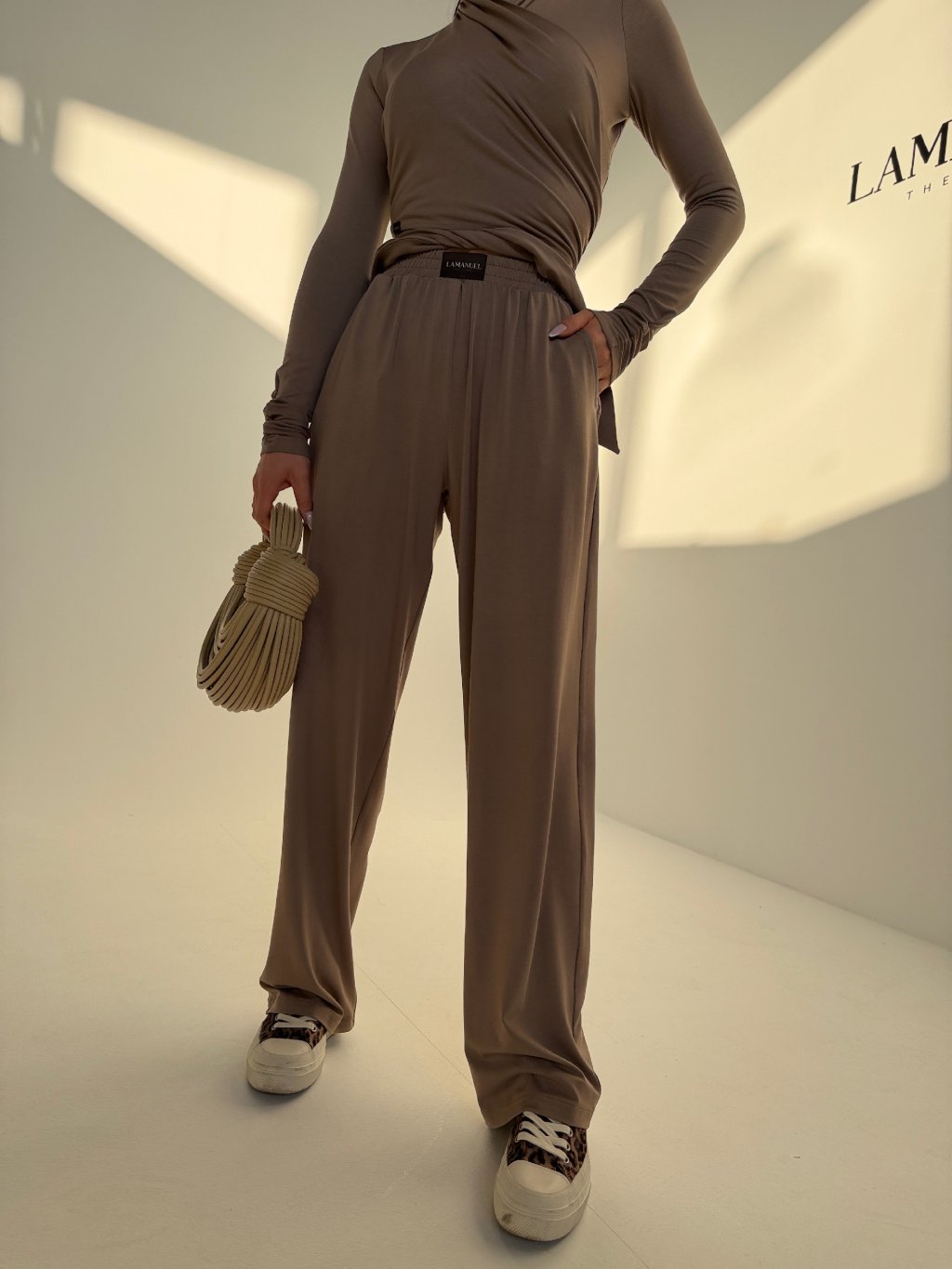 Voľné nohavice z jemnej viskózy s rovnou siluetou. Minimalistický strih, elastický pás a bočné vrecká. Súčasť kolekcie NOISE.