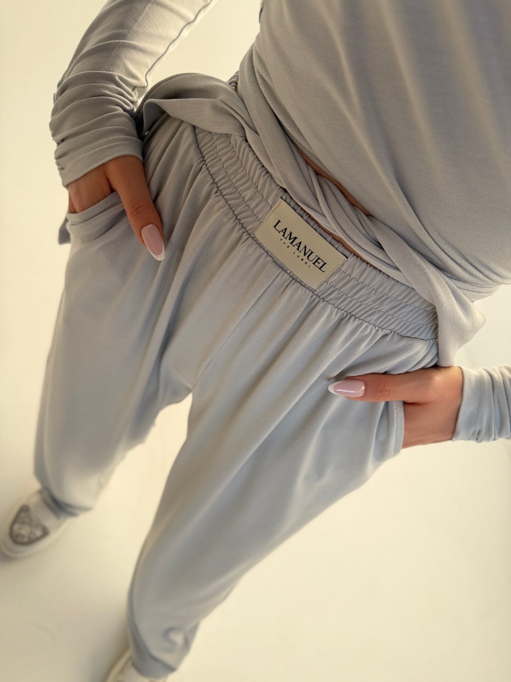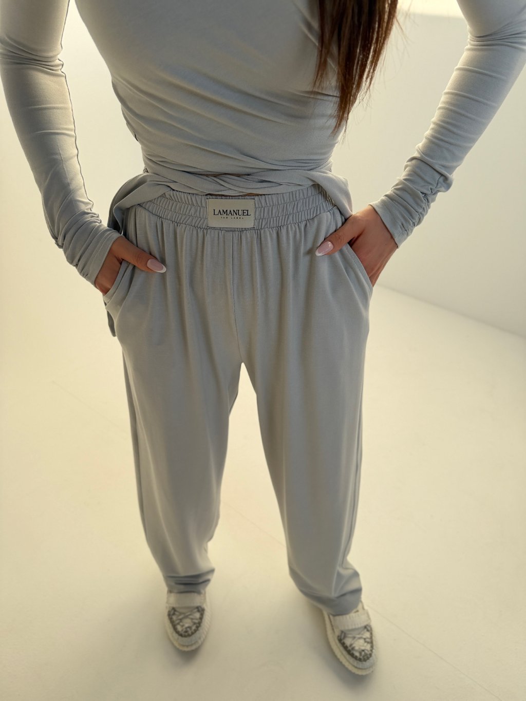 Voľné nohavice z jemnej viskózy s elastickým pásom a rovným strihom. Elastický pás zabezpečuje čistú líniu bez zbytočných detialov, bočné vrecká dodávajú funkčný minimalizmus. Materiál je mäkký, splývavý a príjemný na nosenie. Nadčasový základ, ktorý prirodzene ladí s topom NOISE z rovnakej kolekcie.